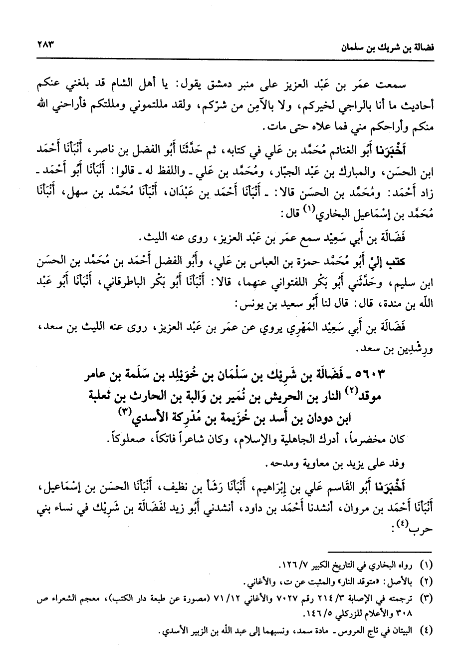 5603 - فضالة بن شريك بن سلمان بن خويلد بن سلمة بن عامر موقد (2) النار بن الحريش بن نمير بن والبة بن الحارث بن ثعلبة ابن دودان بن أسد بن خزيمة بن مدركة الأسدي (3) كان مخضرما أدرك الجاهلية والإسلام وكان شاعرا فاتكا صعلوكا وفد على يزيد بن معاوية ومدحه أخبرنا أبو القاسم علي بن إبراهيم أنبأنا رشأ بن نظيف أنبأنا الحسن بن إسماعيل أنبأنا أحمد بن مروان أنشدنا أحمد بن داود أنشدني أبو زيد لفضالة بن شريك في نساء بني حرب (4)