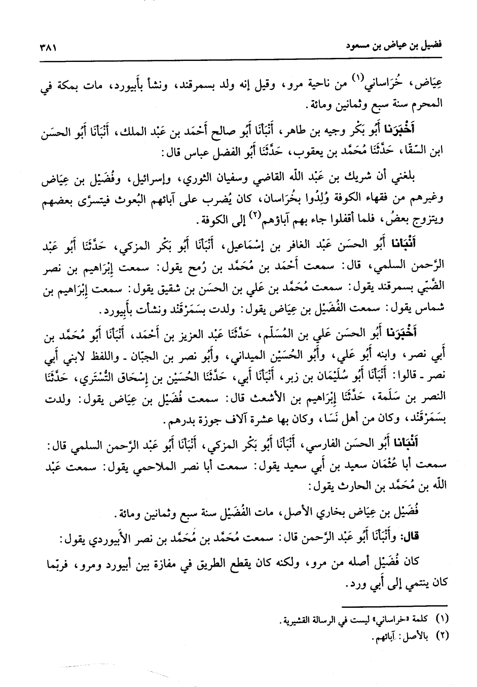 (1) كلمة " خراساني " ليست في الرسالة القشيرية