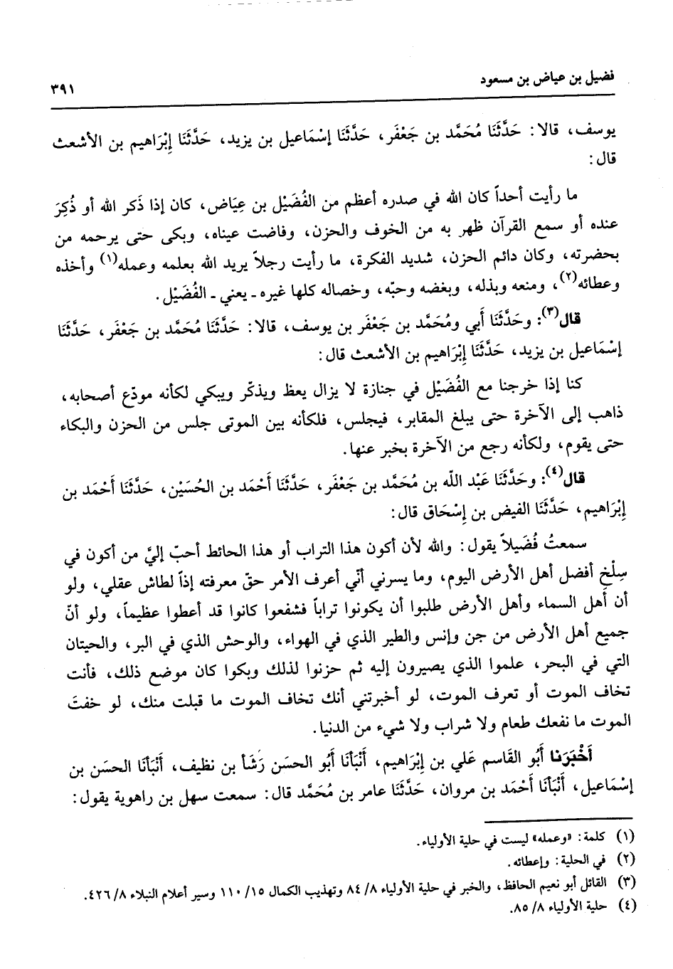 (3) القائل أبو نعيم الحافظ والخبر في حلية الاولياء 8 / 84 وتهذيب الكمال 15 / 110 وسير أعلام النبلاء 8 / 426