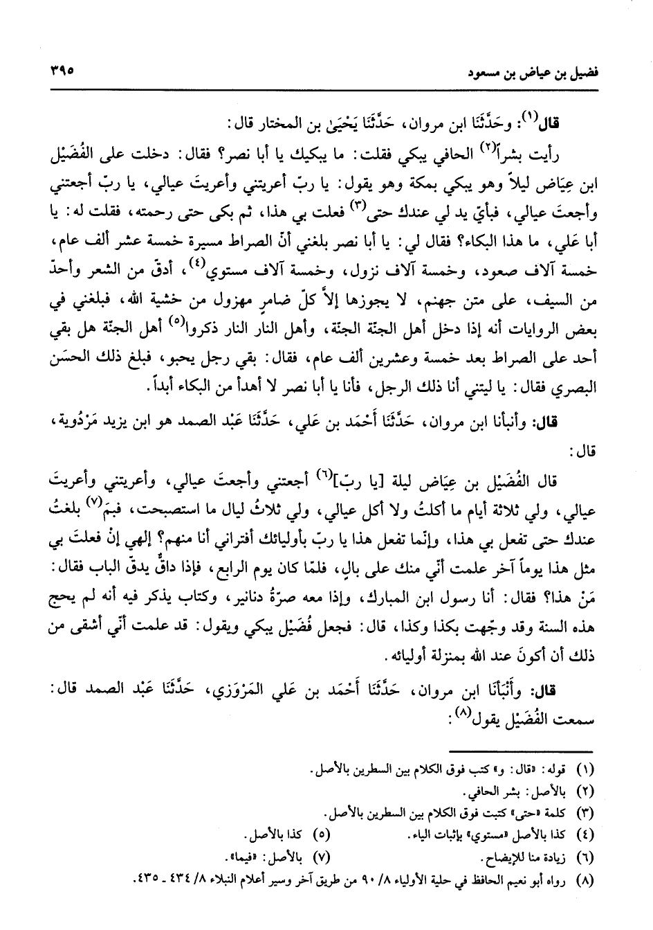 (8) رواه أبو نعيم الحافظ في حلية الاولياء 8 / 90 من طريق آخر وسير أعلام النبلاء 8 / 434 - 435