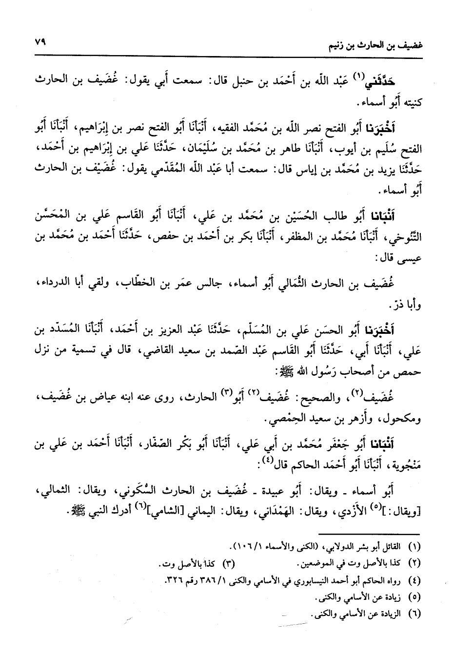 (6) الزيادة عن الاسامي والكنى