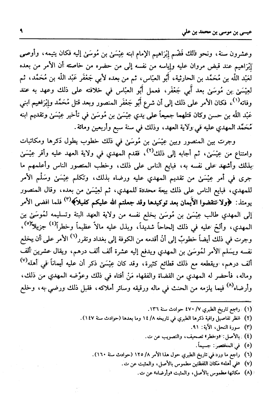 (6) راجع ما ورد في تاريخ الطبري حول هذا الامر 8 / 125 (حوادث سنة 160)