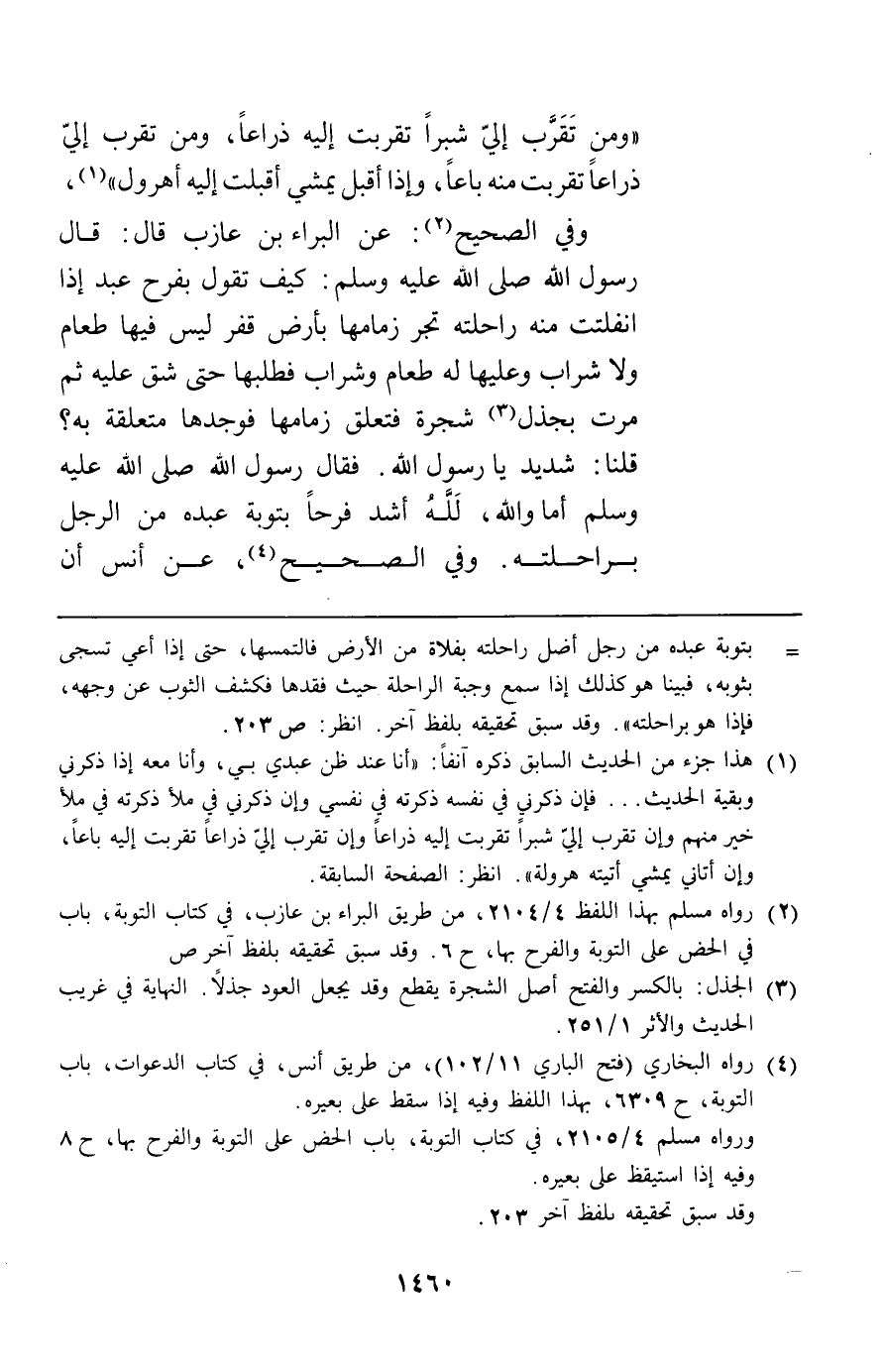 "ومن تقرب إلي شبرا تقربت إليه ذراعا ومن تقرب إلي ذراعا تقربت منه باعا وإذا أقبل يمشي أقبلت إليه أهرول ".