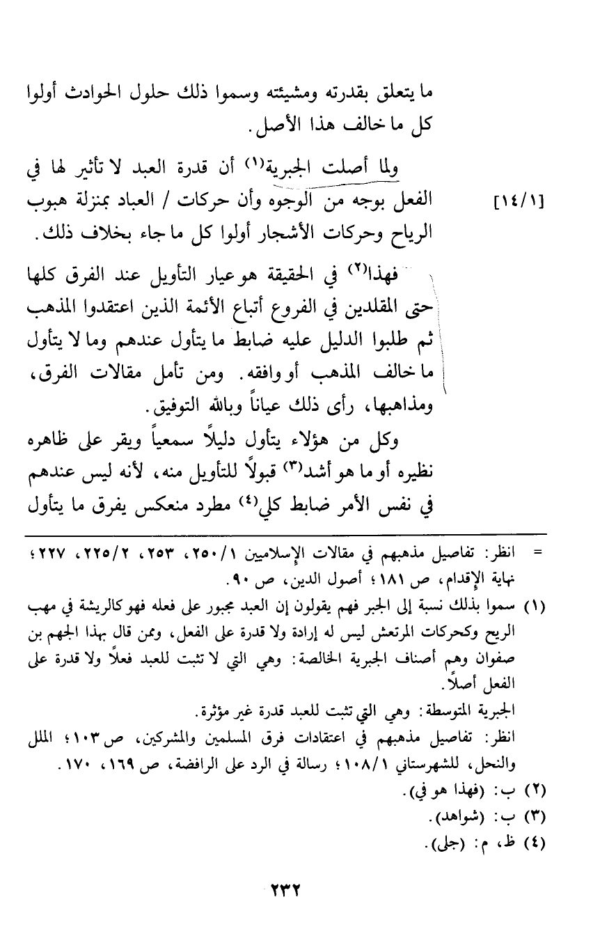 ما يتعلق بقدرته ومشيئته وسموا ذلك حلول الحوادث أولوا كل ما خالف هذا الأصل. ولما أصلت الجبرية أن قدرة العبد لا تأثير لها في الفعل بوجه من الوجوه وأن حركات العباد بمنزلة هبوب الرياح وحركات الأشجار أولوا كل ما جاء بخلاف ذلك.