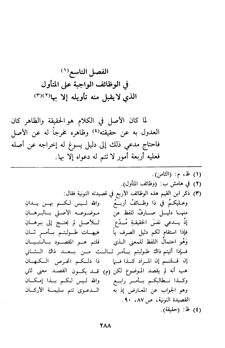 الفصل التاسع: في الوظائف الواجبة على المتأول الذي لا يقبل منه تأويله إلا بها