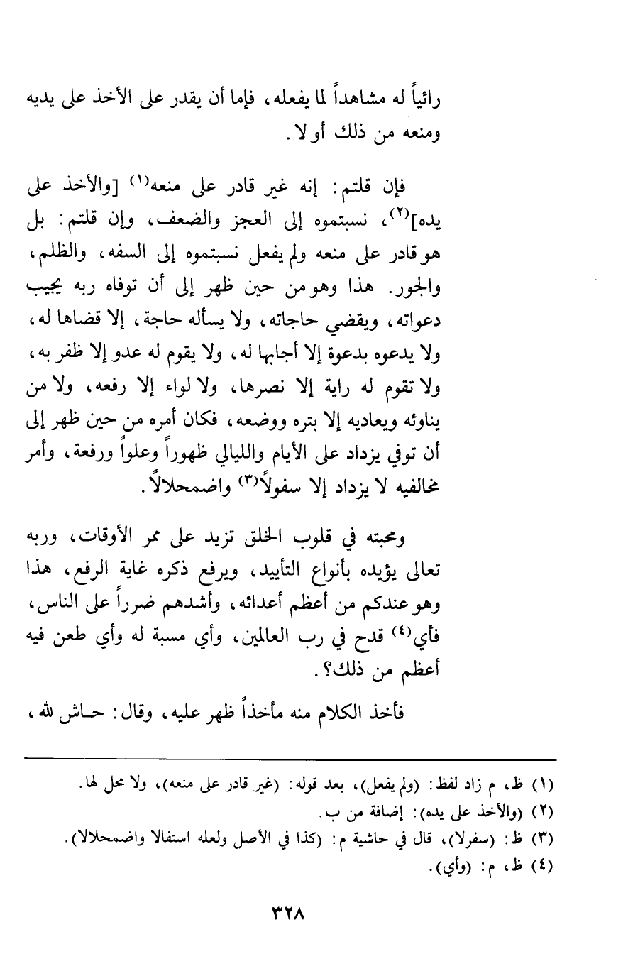 رائيا له مشاهدا لما يفعله فإما أن يقدر على الأخذ على يديه ومنعه من ذلك أو لا.