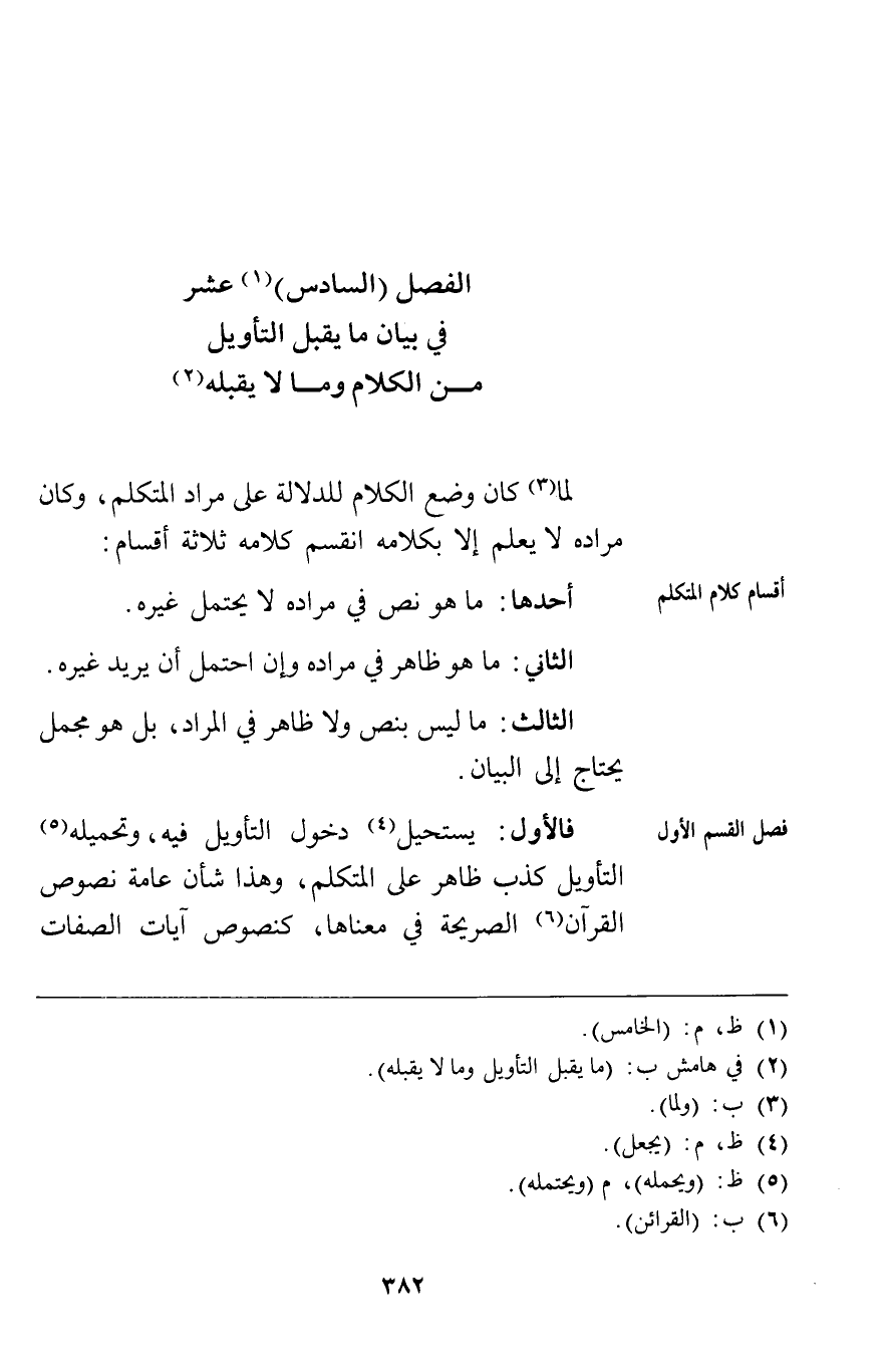 الفصل السادس عشر: في بيان ما يقبل التأويل من الكلام وما لا يقبله
