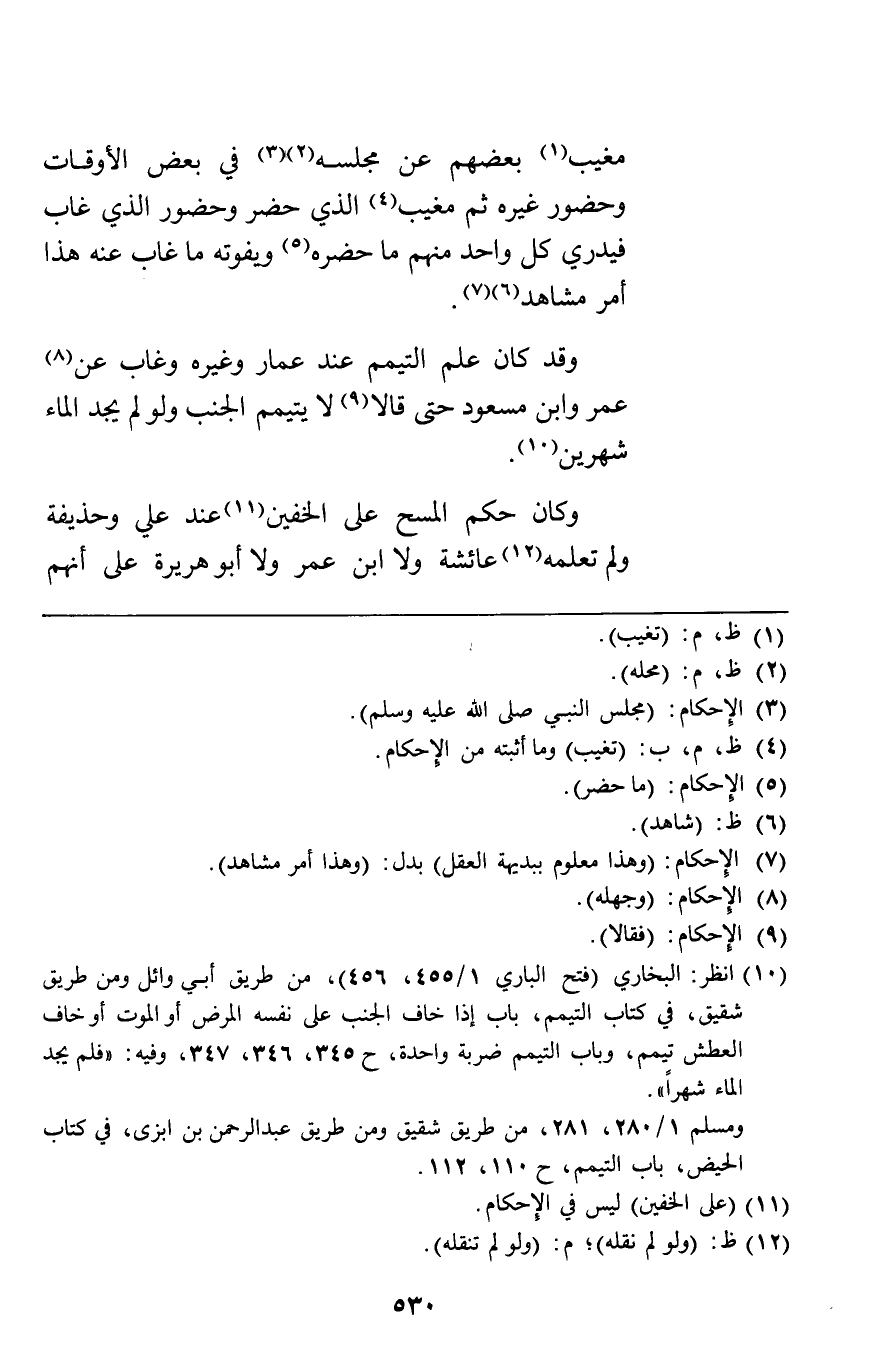 وكان حكم المسح على الخفين عند علي وحذيفة ولم تعلمه عائشة ولا ابن عمر ولا أبو هريرة على أنهم