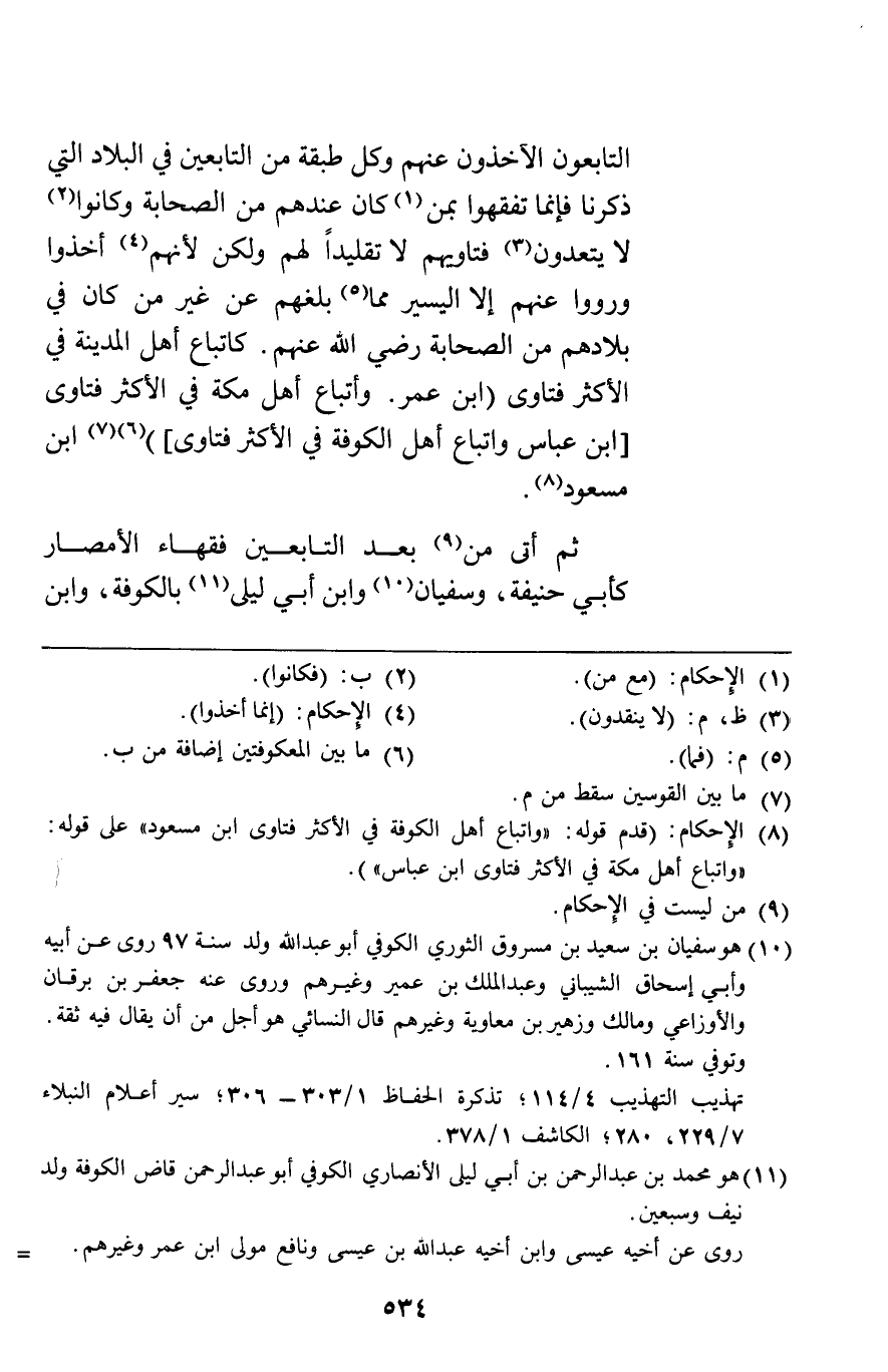 ثم أتى من بعد التابعين فقهاء الأمصار كأبي حنيفة وسفيان وابن أبي ليلى بالكوفة وابن