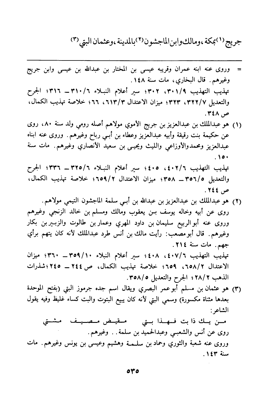 جريج بمكة ومالك وابن الماجشون بالمدينة وعثمان البتي