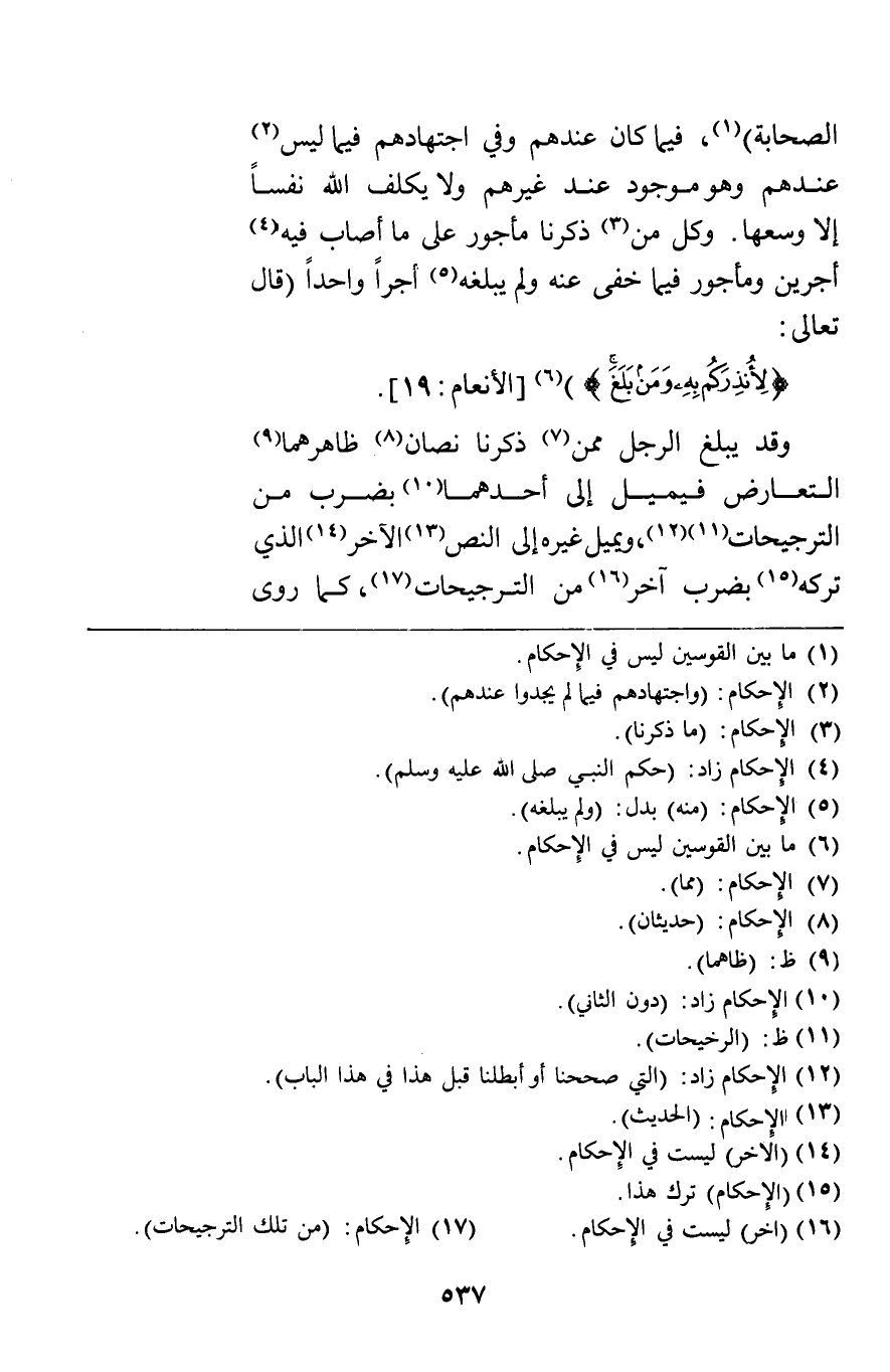 الصحابة فيما كان عندهم وفي اجتهادهم فيما ليس عندهم وهو موجود عند غيرهم ولا يكلف الله نفسا إلا وسعها وكل من ذكرنا مأجور على ما أصاب فيه أجرين ومأجور فيما خفي عنه ولم يبلغه أجرا واحدا قال تعالى {لأُنْذِرَكُمْ بِهِ وَمَنْ بَلَغَ} [الأنعام19] وقد يبلغ الرجل ممن ذكرنا نصان ظاهرهما التعارض فيميل إلى أحدهما بضرب من الترجيحات ويميل غيره إلى النص الآخر الذي تركه بضرب آخر من الترجيحات كما روى