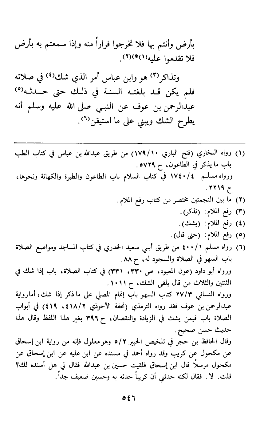 وتذاكر هو وابن عباس أمر الذي شك في صلاته فلم يكن قد بلغته السنة في ذلك حتى حدثه عبد الرحمن بن عوف عن النبي أنه يطرح الشك ويبني على ما استيقن.