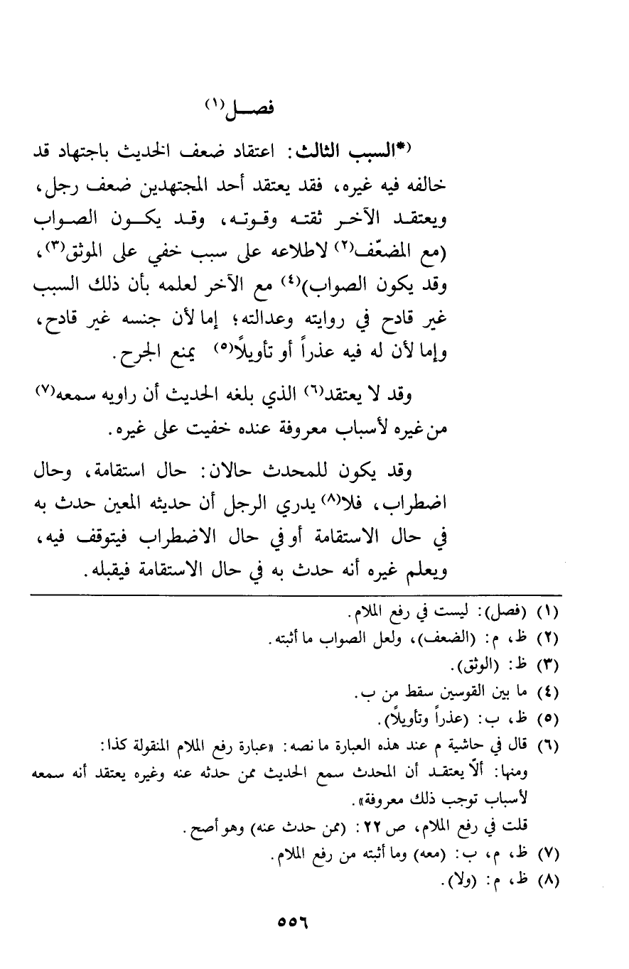 السبب الثالث: اعتقاد ضعف الحديث باجتهاد قد خالفه فيه غيره فقد يعتقد أحد المجتهدين ضعف رجل ويعتقد الآخر ثقته وقوته وقد يكون الصواب مع المضعف لاطلاعه على سبب خفي على الموثق وقد يكون الصواب مع الآخر لعلمه بأن ذلك السبب غير قادح في روايته وعدالته إما لأن جنسه غير قادح وإما لأن له فيه عذرا أو تأويلا يمنع الجرح.