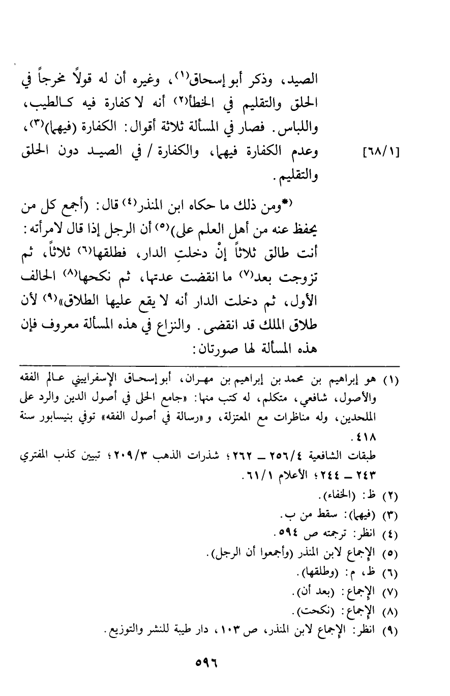 ومن ذلك ما حكاه ابن المنذر قال أجمع كل من يحفظ عنه من أهل العلم على أن الرجل إذا قال لامرأته أنت طالق ثلاثا إن دخلت الدار فطلقها ثلاثا ثم تزوجت بعد ما انقضت عدتها ثم نكحها الحالف الأول ثم دخلت الدار أنه لا يقع عليها الطلاق لأن طلاق الملك قد انقضى والنزاع في هذه المسألة معروف فإن هذه المسألة لها صورتان: