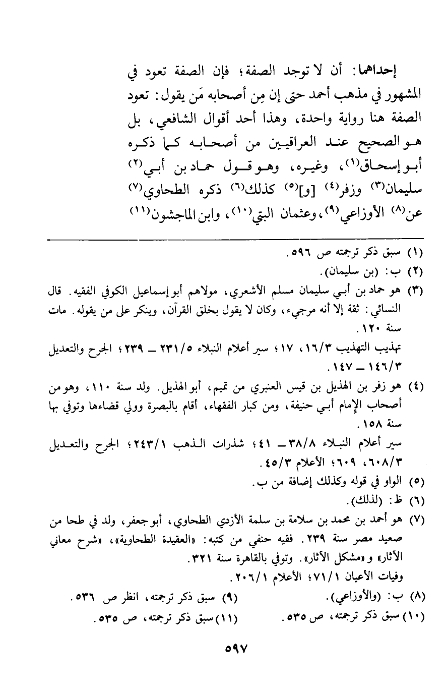 إحداهما: أن لا توجد الصفة فإن الصفة تعود في المشهور في مذهب أحمد حتى إن من أصحابه من يقول تعود الصفة هنا رواية واحدة وهذا أحد أقوال الشافعي بل هو الصحيح عند العراقيين من أصحابه كما ذكره أبو إسحاق وغيره وهو قول حماد بن أبي سليمان وزفر وكذلك ذكره الطحاوي عن الأوزاعي وعثمان البتي وابن الماجشون