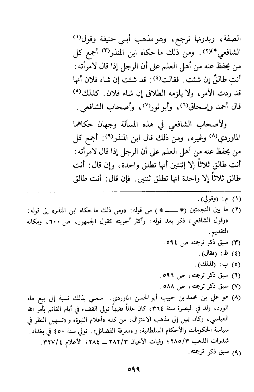 الصفة وبدونها ترجع وهو مذهب أبي حنيفة وقول الشافعي ومن ذلك ما حكاه ابن المنذر أجمع كل من يحفظ عنه من أهل العلم على أن الرجل إذا قال لامرأته أنت طالق إن شئت فقالت قد شئت إن شاء فلان أنها قد ردت الأمر ولا يلزمه الطلاق إن شاء فلان كذلك قال أحمد وإسحاق وأبو ثور وأصحاب الشافعي.