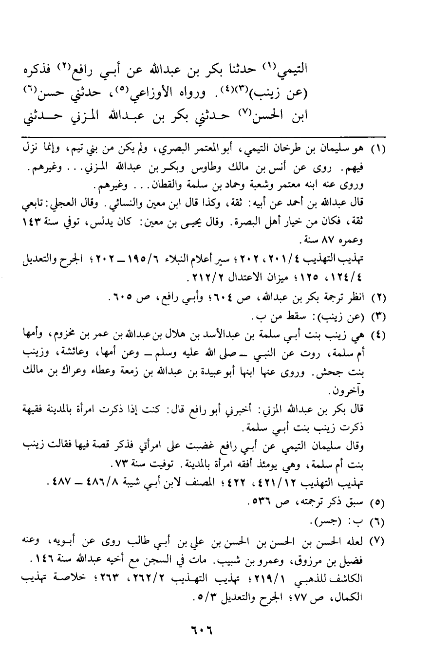 التيمي حدثنا بكر بن عبد الله عن أبي رافع فذكره عن زينب ورواه الأوزاعي حدثني حسن بن الحسن حدثني بكر بن عبد الله المزني حدثني
