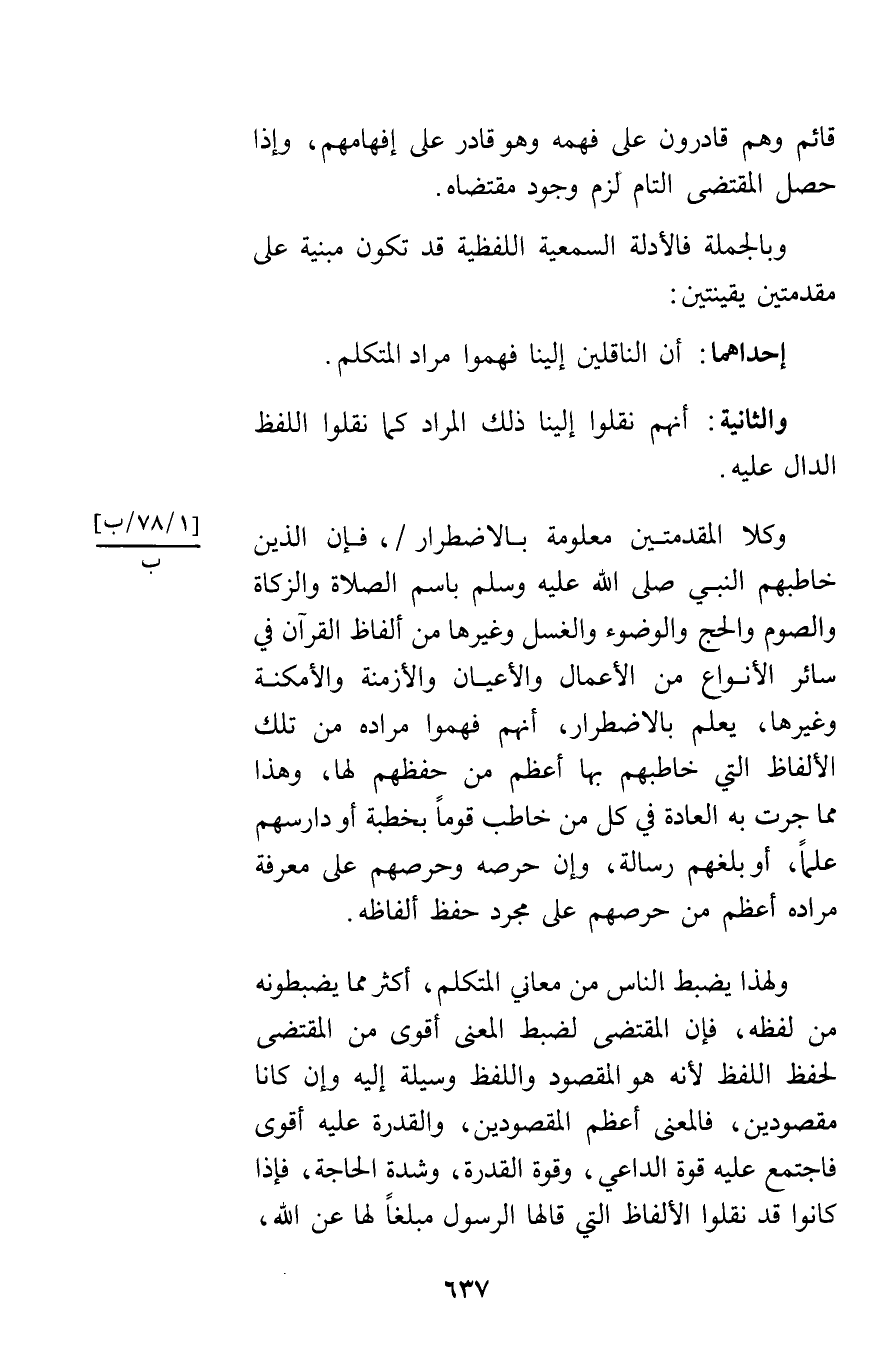 قائم وهم قادرون على فهمه وهو قادر على إفهامهم وإذا حصل المقتضى التام لزم وجود مقتضاه وبالجملة فالأدلة السمعية اللفظية قد تكون مبنية على مقدمتين يقينتين