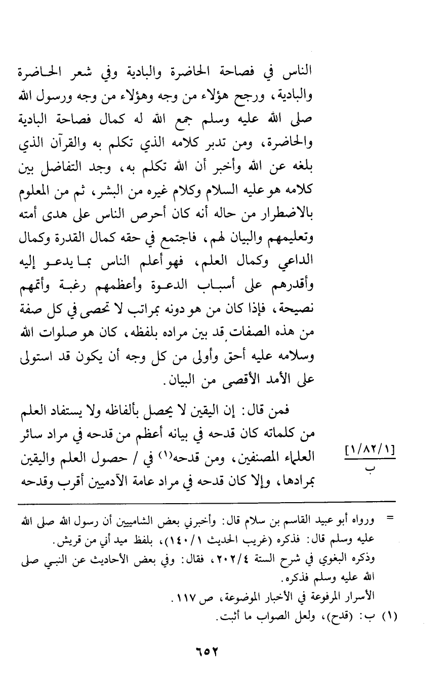 فمن قال إن اليقين لا يحصل بألفاظه ولا يستفاد العلم من كلماته كان قدحه في بيانه أعظم من قدحه في مراد سائر العلماء المصنفين ومن قدحه في حصول العلم واليقين بمرادها وإلا كان قدحه في مراد عامة الآدميين أقرب وقدحه