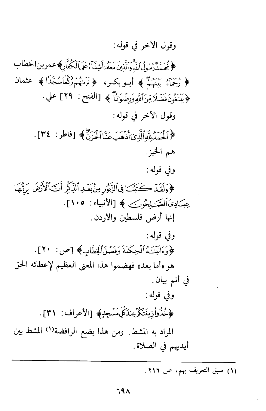 وفي قوله {وَلَقَدْ كَتَبْنَا فِي الزَّبُورِ مِنْ بَعْدِ الذِّكْرِ أَنَّ الْأَرْضَ يَرِثُهَا عِبَادِيَ الصَّالِحُونَ} [الأنبياء 105] إنهاأرض فلسطين والأردن وفي قوله {وَآتَيْنَاهُ الْحِكْمَةَ وَفَصْلَ الْخِطَابِ} [ص20] هو أما بعد