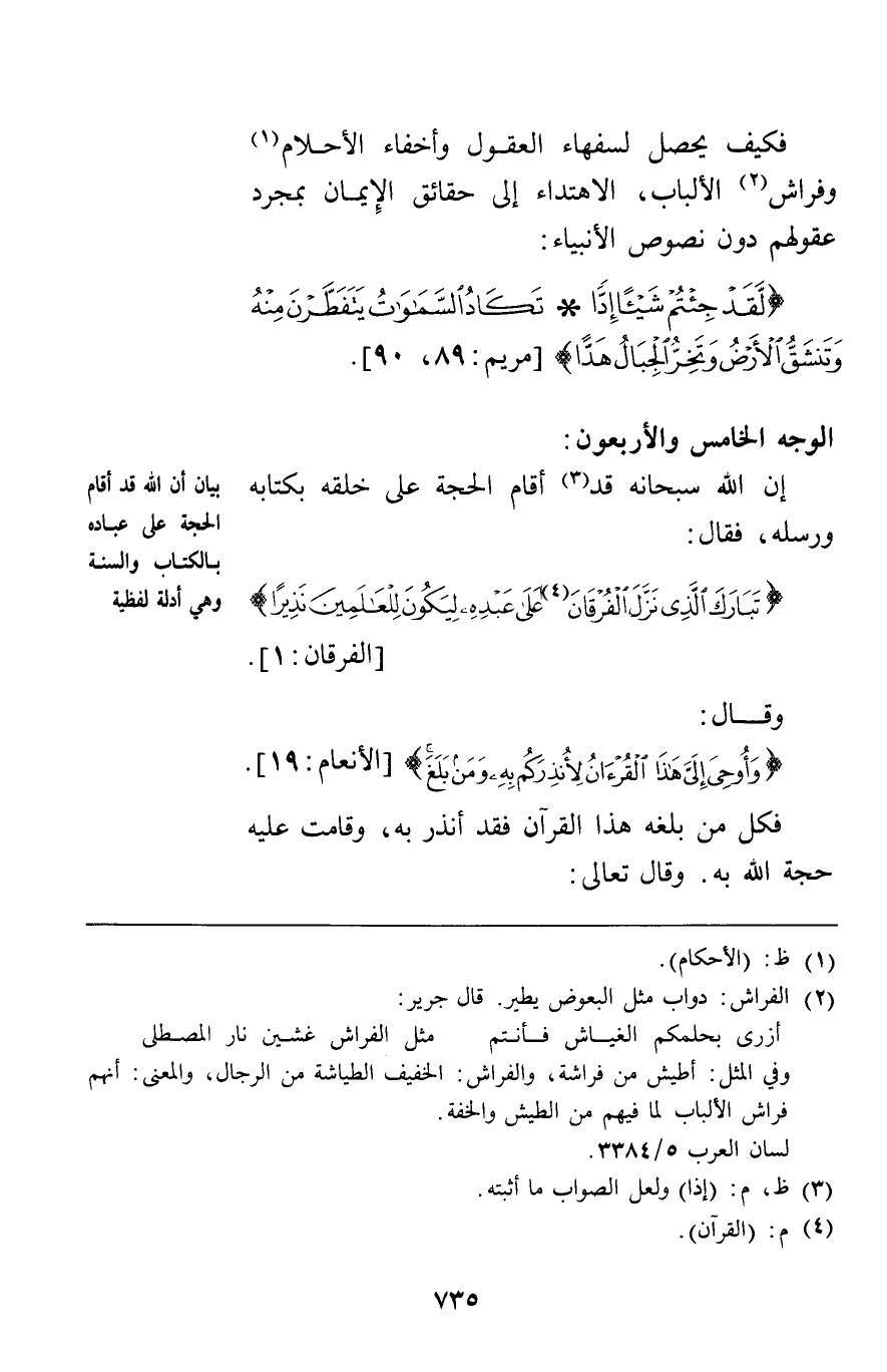 فكيف يحصل لسفهاء العقول وأخفاء الأحلام وفراش الألباب الاهتداء إلى حقائق الإيمان بمجرد عقولهم دون نصوص الأنبياء: {لَقَدْ جِئْتُمْ شَيْئاً إِدّاً تَكَادُ السَّمَاوَاتُ يَتَفَطَّرْنَ مِنْهُ وَتَنْشَقُّ الْأَرْضُ وَتَخِرُّ الْجِبَالُ هَدّاً} [مريم90 , 89]