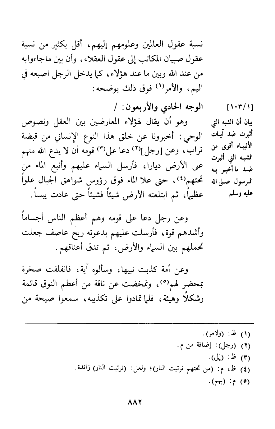 نسبة عقول العالمين وعلومهم إليهم أقل بكثير من نسبة عقول صبيان المكاتب إلى عقول العقلاء وأن بين ما جاءوا به من عند الله وبين ما عند هؤلاء كما يدخل الرجل أصبعه في اليم والأمر فوق ذلك يوضحه