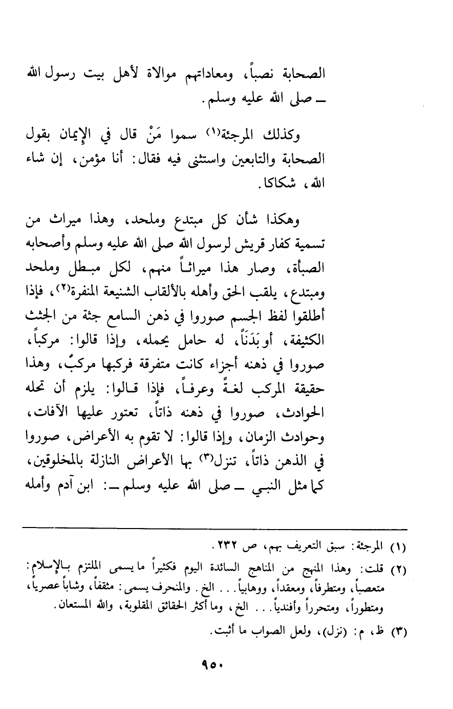 الصحابة نصبا ومعاداتهم موالاة لأهل بيت رسول الله وكذلك المرجئة سموا من قال في الإيمان بقول الصحابة والتابعين واستثنى فيه فقال أنا مؤمن إن شاء الله شكاكا.