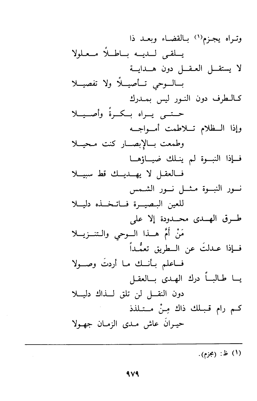 فإذا النبوة لم ينلك ضياؤها ... فالعقل لا يهديك قط سبيلا
