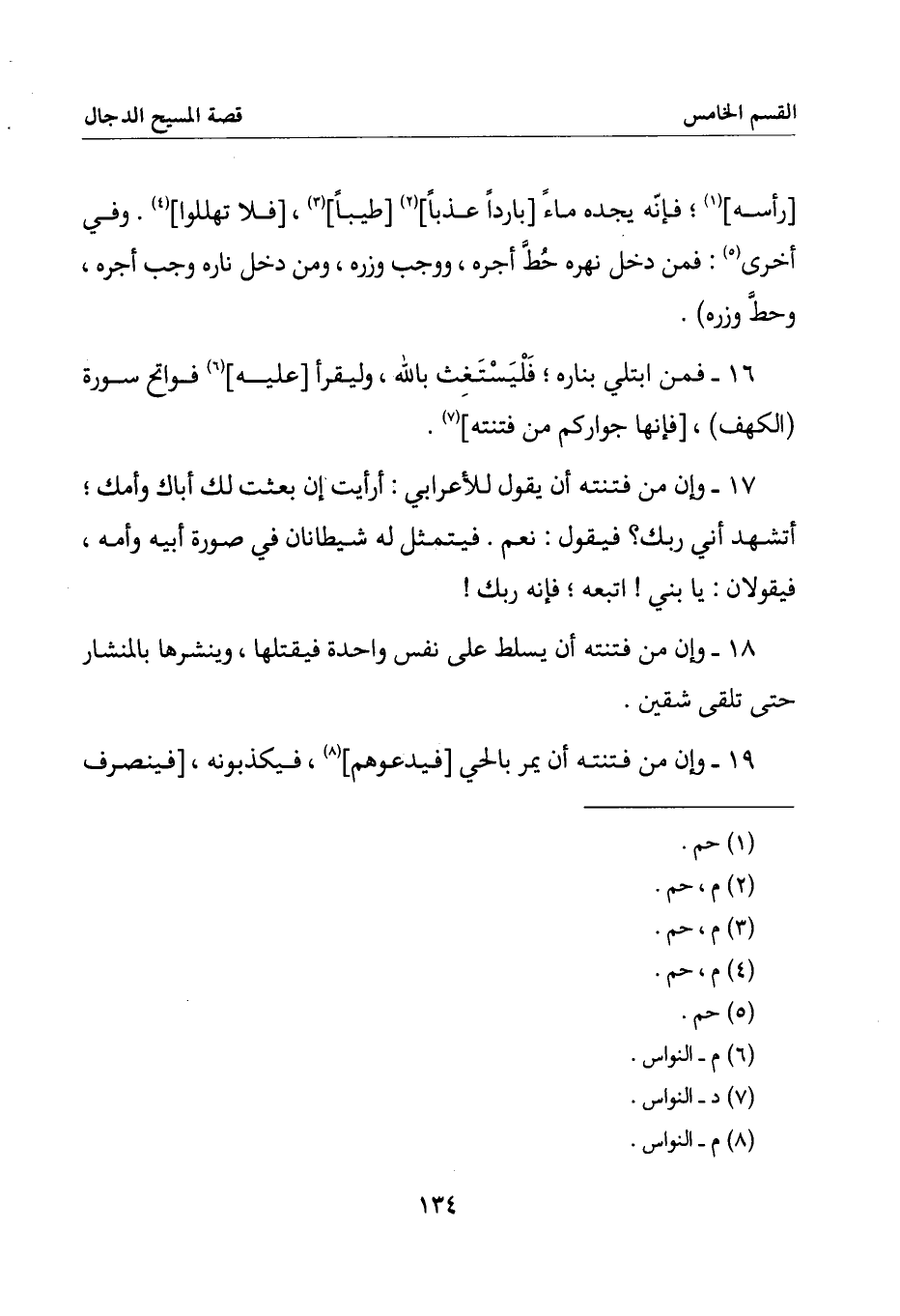 19 - وإن من فتنته أن يمر بالحي [فيدعوهم] فيكذبونه [فينصرف