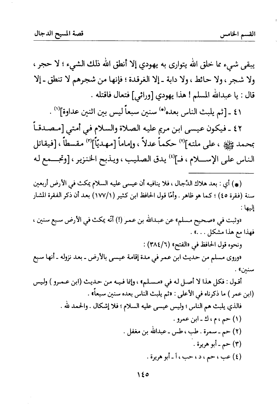 41 - [ثم يلبث الناس بعده سنين سبعا ليس بين اثنين عداوة]