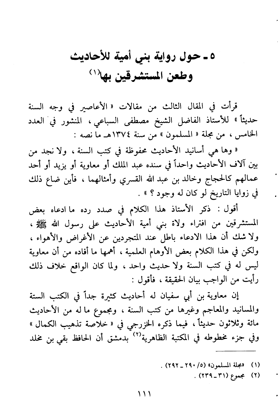 5 - حول رواية بني أمية للأحاديث وطعن المستشرقين بها (¬1)