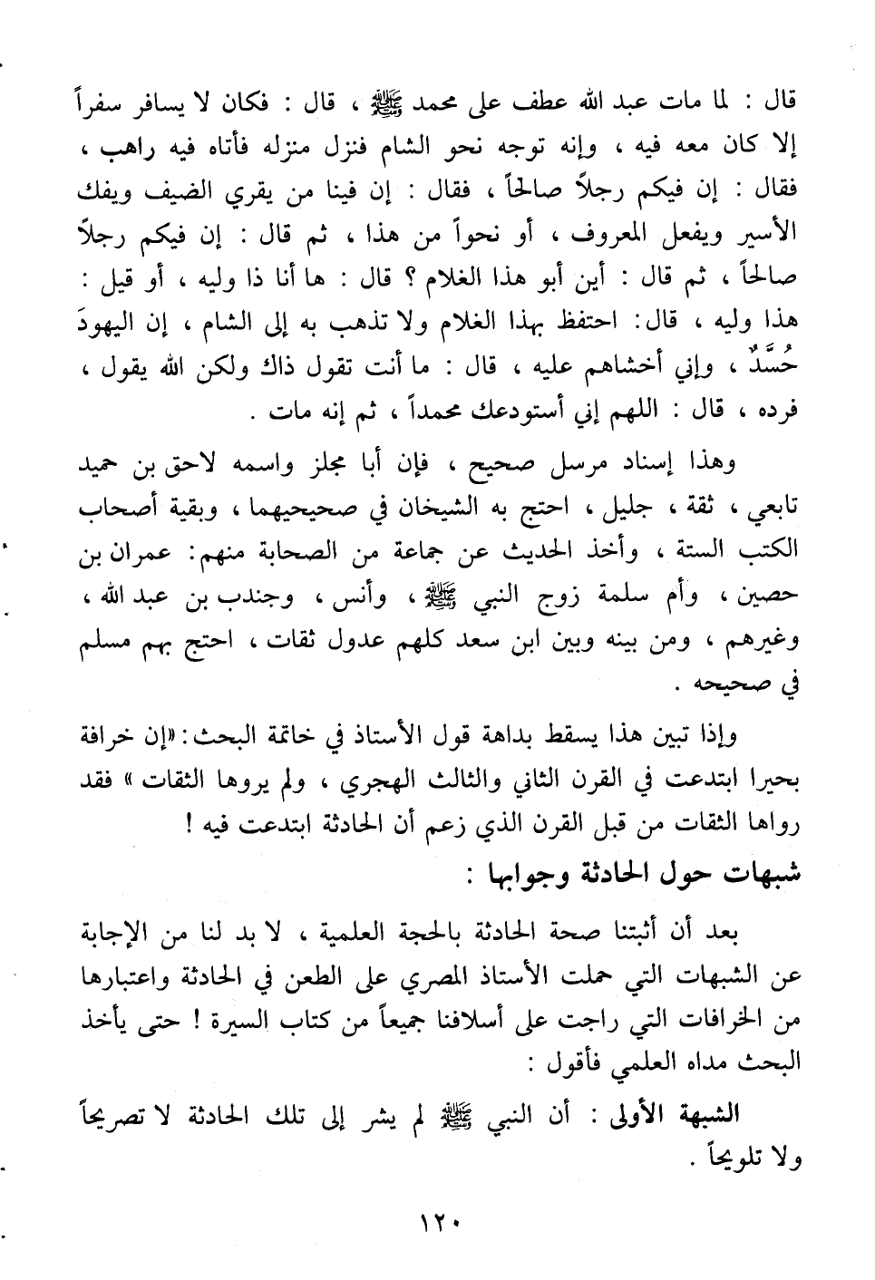 وإذا تبين هذا يسقط بداهة قول الأستاذ في خاتمة البحث: " إن خرافة بحيرا ابتدعت في القرن الثاني والثالث الهجري، ولم يروها الثقات " فقد رواها الثقات من قبل القرن الذي زعم أن الحادثة ابتدعت فيه!