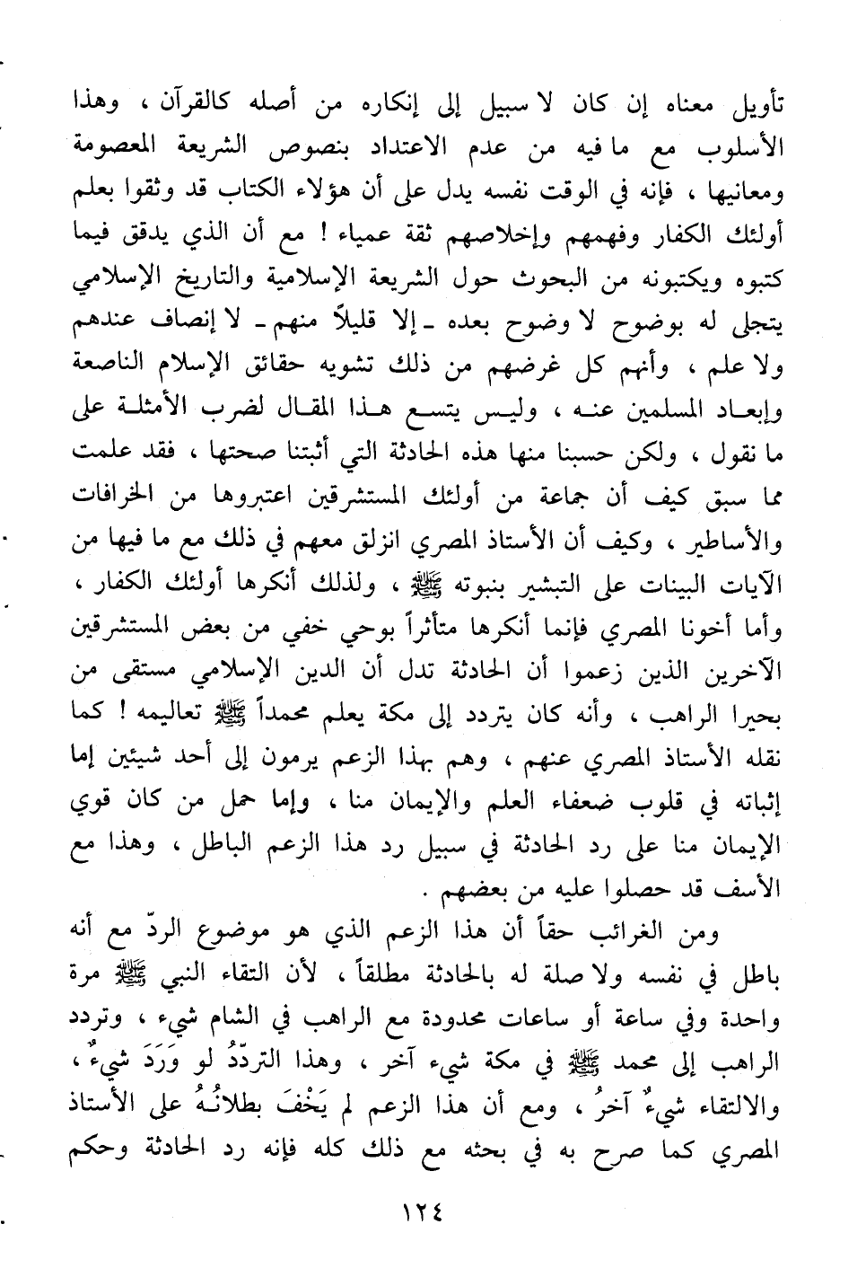 ومن الغرائب حقاً أن هذا الزعم الذي هو موضوع الرد مع أنه باطل في نفسه ولا صلة له بالحادثة مطلقاً، لأن التقاء النبي -صلى الله عليه وسلم- مرة واحدة وفي ساعة أو ساعات محدودة مع الراهب في الشام شيء، وتردد الراهب إلى محمد -صلى الله عليه وسلم- في مكة شيء آخر، وهذا التردد لو ورد شيء، والالتقاء شئ آخر، ومع أن هذا الزعم لم يخف بطلانه على الأستاذ المصري كما صرح به في بحثه مع ذلك كله فإنه رد الحادثة وحكم