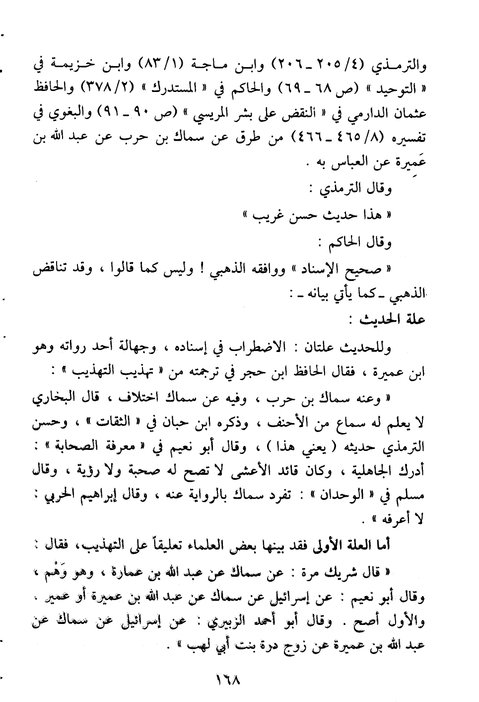 والترمذي (4/ 205 - 206) وابن ماجة (1/ 83) وابن خزيمة في " التوحيد " (ص 68 - 69) والحاكم في " المستدرك " (2/ 378) والحافظ عثمان الدارمي في " النقض على بشر المريسي " (ص 90 - 91) والبغوي في تفسيره (8/ 465 - 466) من طرق عن سماك بن حرب عن عبد الله بن عميرة عن العباس به.