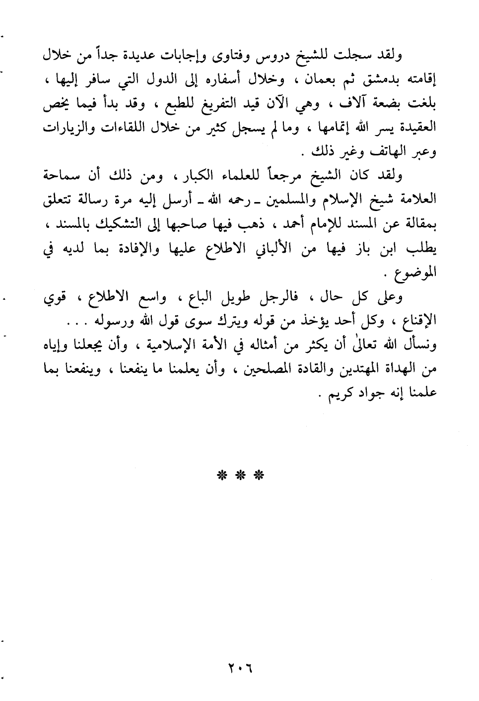 وعلى كل حال، فالرجل طويل الباع، واسع الاطلاع، قوي الإقناع، وكل أحد يؤخذ من قوله ويترك سوى قول الله ورسوله. . . ونسأل الله تعالى أن يكثر من أمثاله في الأمة الإسلامية، وأن يجعلنا وإياه من الهداة المهتدين والقادة المصلحين، وأن يعلمنا ما ينفعنا، وينفعنا بما علمنا إنه جواد كريم.