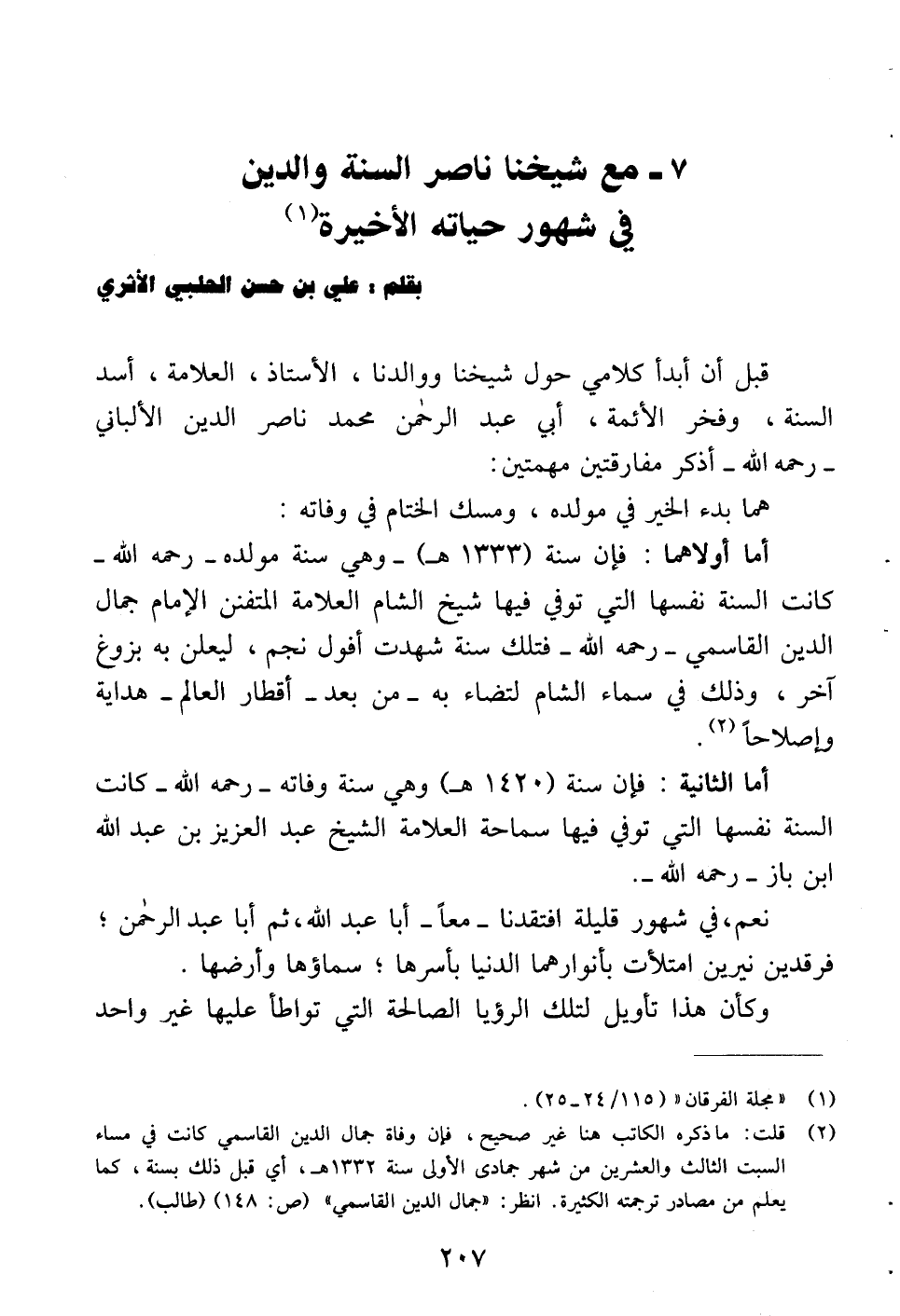 7 - مع شيخنا ناصر السنة والدين في شهور حياته الأخيرة (¬1)