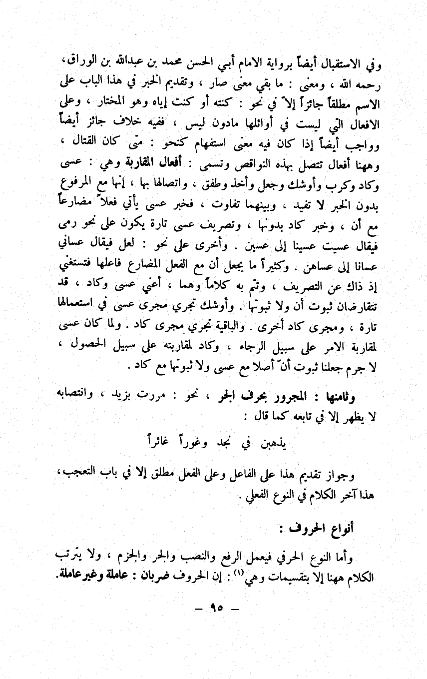 فتحة غير المنصرف أشبهت الحركة الإعرابية التي من شأنها الاستمرار في أنواعها فحملت التوابع مفردة سوى البدل ونحو زيد وعمرو من المعطوفات تارة على اللفظ وأخرى على المحل في غير المبهم، وفي المبهم أيضا وهو أي واسم الإشارة لكن ما عدا الصفة فإنها عند غير المازني لا تكون إلا بالضم أو مضافة فعلى المحل ألبتة ووصف أي لا يجوز إلا بما فيه الألف واللام أو باسم الإشارة نحو يا أيها الجل ويا أي هذا، ووصف اسم الإشارة لا يكون إلا بما فيه الألف واللام نحو يا هذا الرجل ويا هؤلاء الرجال، ومن شأن المنادى إذا أضيف على المتكلم أن يقال في الأغلب يا وفي غيره يا غلامي يا غلاما، وقالوا يا أبت ويا أمت معوضين تاء التأنيث بدليل انقلابها هاء في الوقف عن ضمير المتكلم وعاملوا ابن أمي وابن عمي في النداء تارة معاملة غلامي وأخرى معاملة ابن غلامي.