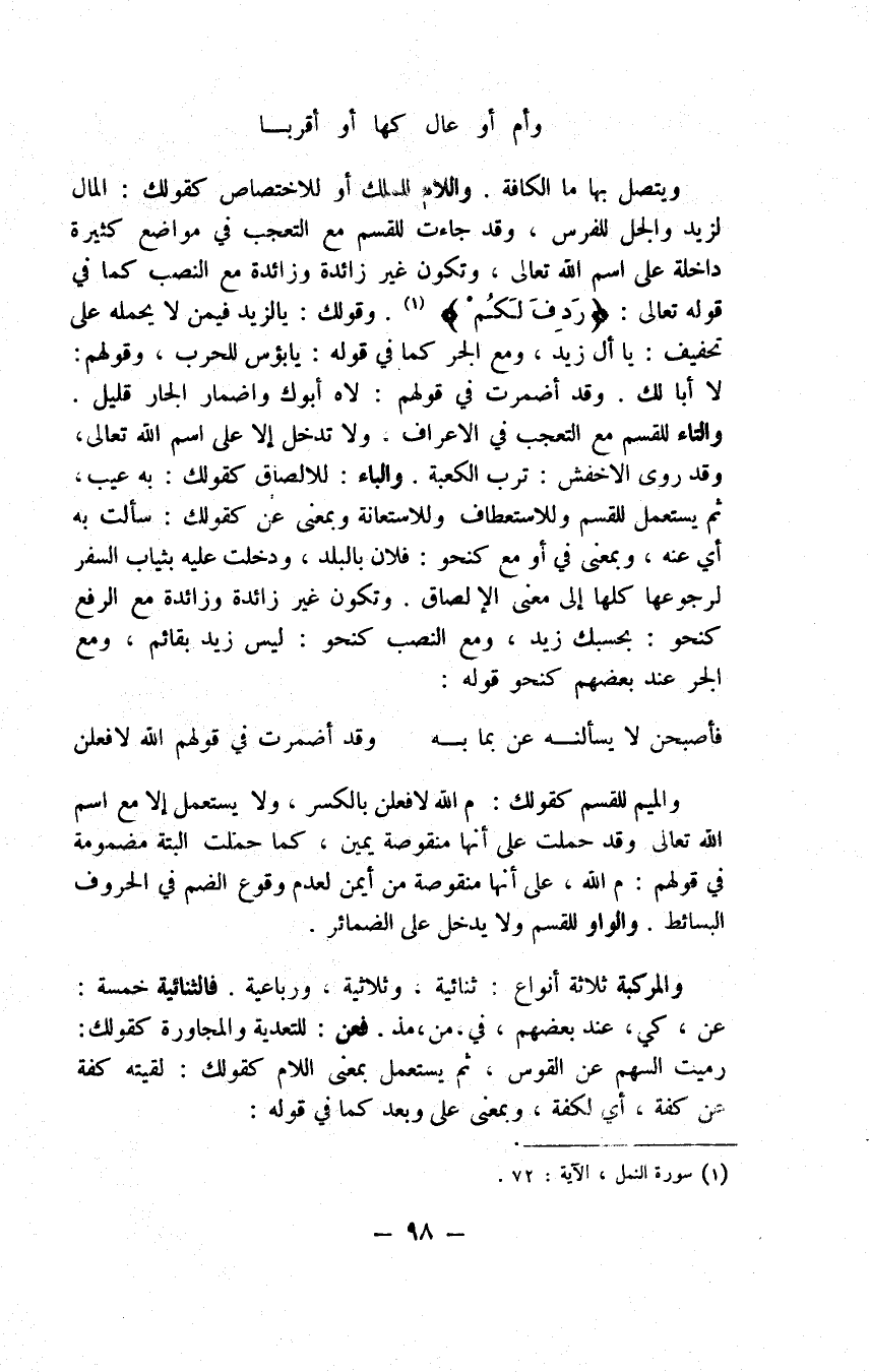 والقسم الثالث وهي الجازمة خمسة أحرف، وهي ضربان: ضرب يلزم المضارع، وهي أربعة لم وهي لنفي فعل تدخل على المضارع فتنفيه وتقلب معناه على المضي، وأصله عند الفراء رحمه الله لا جعلت الألف ميماً ويجوز لم أضرب، ولما وهي لنفي قد فعل تدخل على المضارع فتصنع صنيع لم مع إفادة الامتداد وأصله عند النحويين لم ما ويسكت عليه عند الدلالة دون لم فيقال خرجت ولما ولا للنهى ولام الأمر. وضرب يجري مجرى اللازم للمضارع وهو إن للشرط والجزاء تقول إن تضرب أضرب وإن ضربت ضربت وإن ضربت أضرب بالجزم تارة وأضرب بالرفع أخرى توصلا إليه ببعده عن الجازم مع فوات عمل ذلك في القريب منه ظاهرا وإن كان للضرورة، وإن في الاستعمال تظهر مرة كما ذكرت وتضمر أخرى وذلك في خمسة مواضع لدلالتها عليه وهي ما بعد الأمر والنهي والاستفهام والتمني والعرض فيجزم الفعل فيها إذا لم يلزم شرط لإضمار وهو أن يكون المضمر من جنس المظهر تناف في الكلام أما إذا لزم كنحو لا تدن من الأسد يأكلك فلا وليس لأحد أن يظن بالنفي دلالة على الشرط في موضع لانعقاد التنافي بينهما بالجزم دائما من حيث لزوم عدم الشك النفي وثبوته الشرط ولذلك استقبحوا إن احمر البسر كان كذا وإن طلعت الشمس آنك إلا في يوم المغيم وبنوا صحة قولهم إن مات فلان كان كذا على استلزامه الشك في أي وقت عين له هذا إذا ذكر الفعل فيها لمعنى الجزاء أما إذا ذكر على سبيل التعديد من حيث الظاهر ويسمى قطعا واستئنافا أو لإثبات معناه لمنكر فيها ويسمى صفة أو لمعرف ويسمى حالاً فليس إلا الرفع والمعطوف على المجزوم أو على ما هو في موضعه بالفاء أو بالواو أو بثم من نحو إن