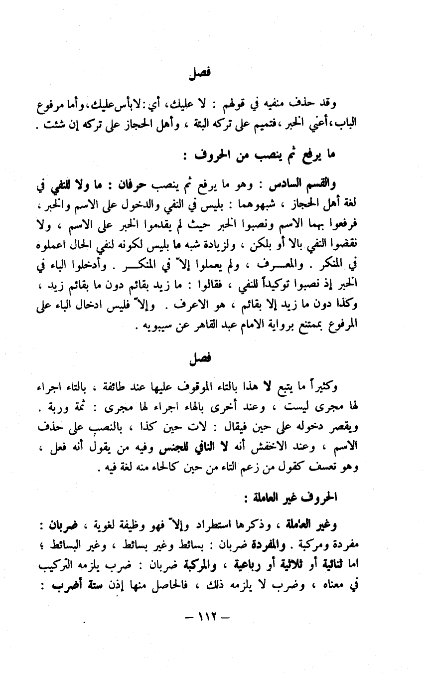 وامرأة أن اسع وكتبت إليه أن احضر وصلة كنحو فلما أن جاء البشير وأما والله أن لو جئتني لأكرمتك ومخففة من الثقيلة كما مضى. وإن تأتي نافية بمنزلة ما كنحو أن يقوم زيد وأن زيد قائم، وقد جوز المبرد رحمه الله إعمالها عمل ليس وصلة كنحو ما أن رأيت عندنا ونحو انتظرني ما أن جلس القاضي ومخففة من الثقيلة على ما عرفت. وأم للاستفهام وطلب الجواب عن أحد ما يذكر على لعيين في العطف كنحو أزيد عندك أم عمر ولذا لا يصح في جوابها إلا زيد أو عمرو أيهما كان وتأنى ولها مدخل في معنى أي تارة وتسمى متصلة وعلامتها إفراد ما بعدها وأخرى في معنى بل وتسمى منقطعة وعلامتها كون ما بعدها جملة أو ورودها في الخبر كنحو " إنها لا بل أم شاء " وأو في الخبر للشك وفي الأمر للتخيير وهو الامتناع عن الجمع أو الإباحة وهي تجويز الجمع، وفي الاستفهام لأحد ما يذكر لا على التعيين وجوابها نعم أو لا وجميع ذلك في العطف. وها للتنبيه وأكثر ما يدخل على أسماء الإشارة للضمائر. وهل للاستفهام كالهمزة إلا فيما كان يتفرع من الاستفهام ثم، وفي الدخول على الواو والفاء وثم وعند سيبويه رحمه الله أنها بمعنى قد وأفادتها معنى الاستفهام لتقدير الهمزة على نحو ما قال أهل رأونا بسفح القاع ذي الأكم ويؤنس لقول سيبويه قلة تصرفها في الكلام.