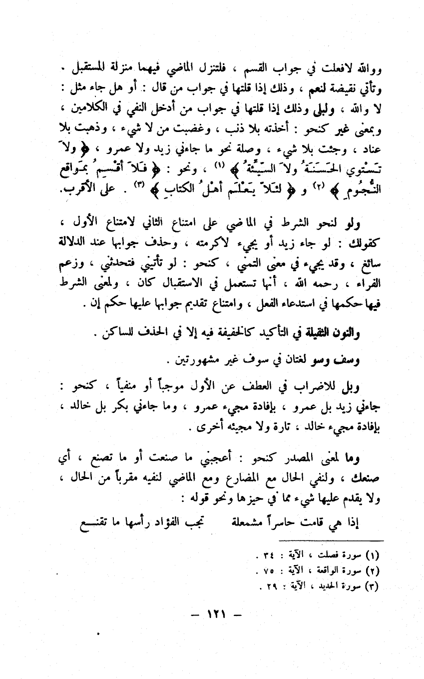 الفراء ذاهبا فيه على أنه في معنى المعرفة إذ لا يلتبس أن المراد به وجه الموصوف. ومعنوية وهي ما عداها ومن حكم أصحابنا أنها في الأمر العام تارة تكون بمعنى من كنحو خاتم فضة وعلامتها صحة إطلاق اسم المضاف إليه على المضاف الذي لا يجانسه في اللفظ بالموضع الواحد وقولي لا يجانسه احتراز عن نحو غلام غلام زيد وقولي بالموضع الواحد احتراز عن نحو غلام زيد إذا اتفق أن يكون اسم الغلام وأخرى بمعنى اللام كنحو ثوب رجل ويده ورجله وعلامتها بعد أن لا تكون بمعنى في كنحو قتلى الطف وثابت الغدر انتفاء تلك الصحة وعندي أنها لا تخرج عن النوعين ونحو قتلى الطف من بابه اللامية بطريق قوله إذا كوكب الخرقاء لاح بسحرة وقوله لتغني عني ذا إنائك أجمعا مما تجري فيه لإضافة بأدنى الملابسة ونحو ثابت الغدر من باب اللفظية وهذه أعني المعنوية إذا كان المضاف إليه نكرة أفادت تخصيصا وإلا فتعريفا لا محالة، ولذلك قلنا في نحو ثلاث الأثواب تعريف الثلاثة باللام مستغنى عنه إلا في نحو غير وشبه اللهم إلا إذا شهر المضاف بمغايرة المضاف إليه كقوله عز وجل " غير المغضوب عليهم " أو مماثلته ولاستلزام الإضافة بالإطلاق إفادة التخصيص أو التعريف ألبتة، اللهم إلا في الأعلام فإنها في نحو عبد الله اسما علما بمعزل عن ذلك وامتناع أن يتعرف الشيء بنفسه أو يتخصص لم يصح نحو ليث أسد وحبس منع وصح نحو