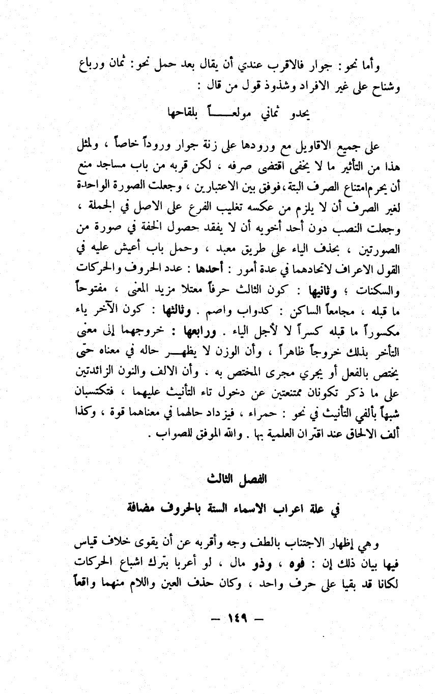 وإنما نصبت أن لمشابهتها أن معنى لاشتراكهما في رد الكلام على معنى المصدر وصورة أيضا إذا خففت وأعملت. وأما الحروف المشبهة فعملها لمشابهتها الأفعال وعندنا أنها لما كانت في العمل فرعا على الفعل وكانت في الشبه بالأفعال دون شبه ما ولا بلبيس اختير لها حطا لدرجتها أدنى مرتبتي الفعل وهي ضرب عمراً زيد ومن يظهر سبب امتناع تقديم الخبر على الاسم ألبتة وهو الترقي على أعلى مرتبتي الفعل في أدنى درجتها. وأما قولهم إن في الدار فالوجه ما اختار جار الله العلامة وارتضاه شيخنا الحاتمي تغمدها الله برضوانه أنه ليس من تقديم الخبر إذ الخبر مدلول في الدار لا نفس في الدار وتقدم ذاك غير مسلم هذا ولكنه يشكل بقولهم حيث لا يصح وقوع العامل لا يصح وقوع المعمول فيه فليتأمل. وأما علة انتظام لا النافية للجنس في سلكها وعلة عمل ما ولا المشبهتين بليس فمذكورتان.