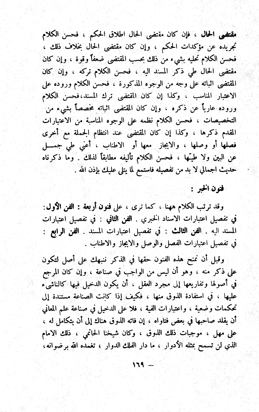 أما الحالة التي تقتضي طي ذكر المسند إليه فهي إذا كان السامع مستحضرا له عارفا منك القصد إليه عند ذكر المسند والترك راجع، إما لضيق المقام، وإما للاحتراز عن العبث بناء على الظاهر، وإما لتخييل أن في تركه تعويلا على شهادة العقل وفي ذكره تعويلا على شهادة اللفظ من حيث الظاهر وكم بين الشهادتين، وإما لإيهام أن تركه تطهيرا للسان عنه أو تطهيرا له عن لسانك، وإما للقصد على عدم التصريح ليكون لك سبيل على الإنكار إن مست إليه حاجة، وإما لأن الخبر لا يصلح إلا له حقيقة كقولك خالق لما يشاء فاعل لما يريد أادعاء، وأما لأن الاستعمال وارد على تركه أو ترك نظائره كقولهم نعم الرجل زيد على قول من يرى أصل الكلام نعم الرجل هو زيد، وأما الأغراض سوى ما ذكر مناسبة في باب الاعتبار بحسب المقامات لا يهتدي على أمثالها إلا العقل السليم والطبع المستقيم وقلما ملك الحكم هناك شيء غيرهما فراجعهما في مثل: