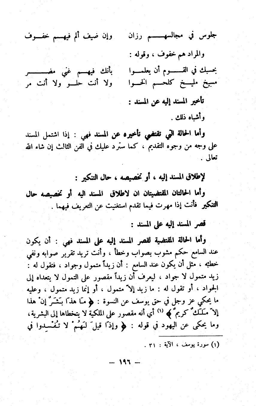أيسع ذهنك أن لا يصير على حد يوجب عليك الإقبال على مولى شأن نفسك معه منذ افتتحت التحميد ما تصورت فتستطيع أن لا تقول إياك يا من هذه صفاته نعبد ونستعين لا غيرك فلا ينطبق على المنزل على ما هو عليه، وليس ابن الحجر الكندي يبعد وهو المشهود له في شأن البلاغة والحائز لقصات السبق في درك اللطائف والمفتلذ للأناسي من عيون النكت في افتنانه في الكلام إذا التفت تلك الالتفاتات، وكان يمكنه ألا يلتفت البتة وذلك أن يسوق الكلام على الحكاية في الأبيات الثلاثة فيقول: