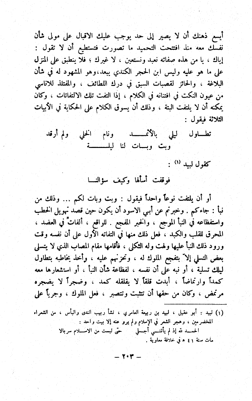 وأما الحالة المقتضية لكونه اسما فهي إذا لم يكن المراد إفادة التجدد والاختصاص بأحد الأزمنة الثلاثة إفادة الفعل لأغراض تتعلق بذلك. وأما الحالة المقتضية لكونه منكرا، فهي إذا كان الخبر واردا على حكاية المنكر كما إذا أخبر عن رجل في قولك عندي رجل تصديقا لك، فقيل الذي عندك رجل أو كان المسند إليه كقولك: رجل من قبيلة كذا حاضر فإن كون المسند إليه نكرة والمسند معرفة سواء قلنا يمتنع عقلا أو يصح عقلا في كلام العرب وتحقيق الكلام فيه ليس مما يهمنا الآن، وأما ما جاء من نحو قوله: ولا يك موقف منك الوداعا وقوله: يكون مزاجها عسل وماء وبيت الكتاب أظبي كان أمك أم حمار فمحمول على منوال عرضت الناقة على الحوض، وأصل الاستعمال ولا يك موقفا منك الوداع ويكون مزاجها عسل وماء وظبيا كان أمك أم حمارا، ولا تظنن بيت الكتاب خارجا عما نحن فيه ذهابا على أن اسم كان أنما هو الضمير، والضمير معرفة فليس المراد كان أمك إنما المراد ظبي بناء على أن ارتفاعه بالفعل المفسر لا بالابتداء، ولذلك قدرنا الأصل على ما ترى وفي البيت اعتبارات سؤالا وجوابا فلا عليك أن تتأملها وإياك والتبخيت في تخطئة أحد ههنا فيخطئ ابن