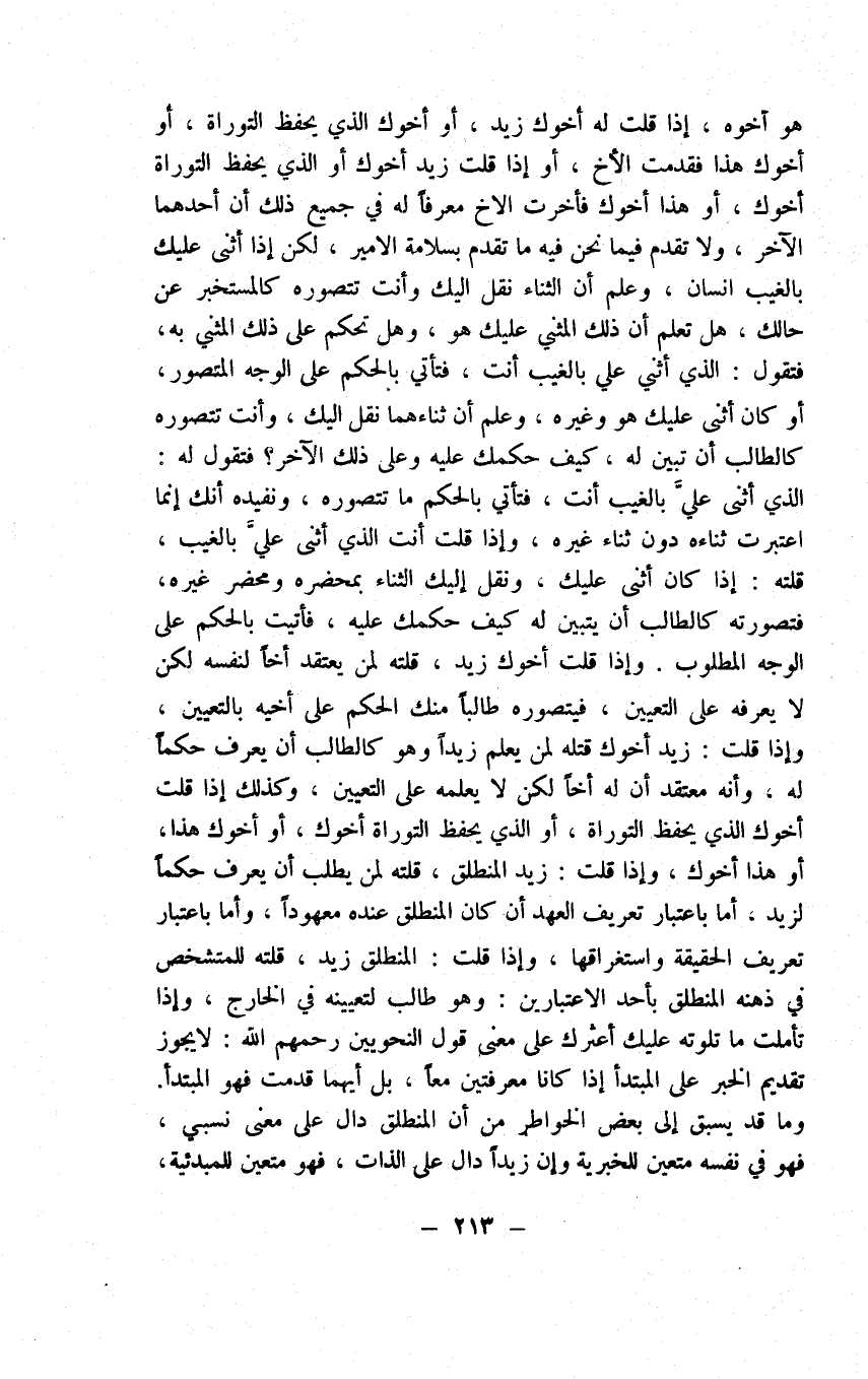 وقوله تعالى " ولكم في الأرض مستقر ومتاع على حين " وما شاكل ذلك فأن النعت لا يقدم على النعوت ولذلك يقال جاءني راكباً رجل وإنما يصار على هذا التنبيه لأن الظرف بتأخره عن المنكر يكون بالحمل على الوصف أولى منه بالحمل على الخبر لأمرين يتعاضدان في ذلك استدعاء المنكر في مقام الابتداء أن يوصف ليتقوى بذلك فائدة الحكم كما سبق في الفن الثاني وصلاحية الظرف أن يكون من صفاته ولذلك لا يجب تقديم الظرف على المنكر إذا كان موصوفا قال الله تعالى " وأجل مسمى عنده " وإن هذا التقديم ملتزم مع مبتدأ غير مصدر أما مع المصدر كنحو سلام عليك وويل لك فلا فرق بين ظرف له حق في التأخير عن مبتدئه ذلك قبل صيرورته مبتدأ وذلك قولك سلاما عليك بالنصب منزلا أسلم عليك مفيدا التجدد لذلك وبين ظرف ليس له ذلك أو أن يكون قلب السامع معقودا به كقولك قد هلك خصمك لمن يتوقع ذلك أو لأنه صالح للتفاؤل أو لأنه أهم عند القائل كما قلت عليه من الرحمن ما يستحقه أو كقوله.