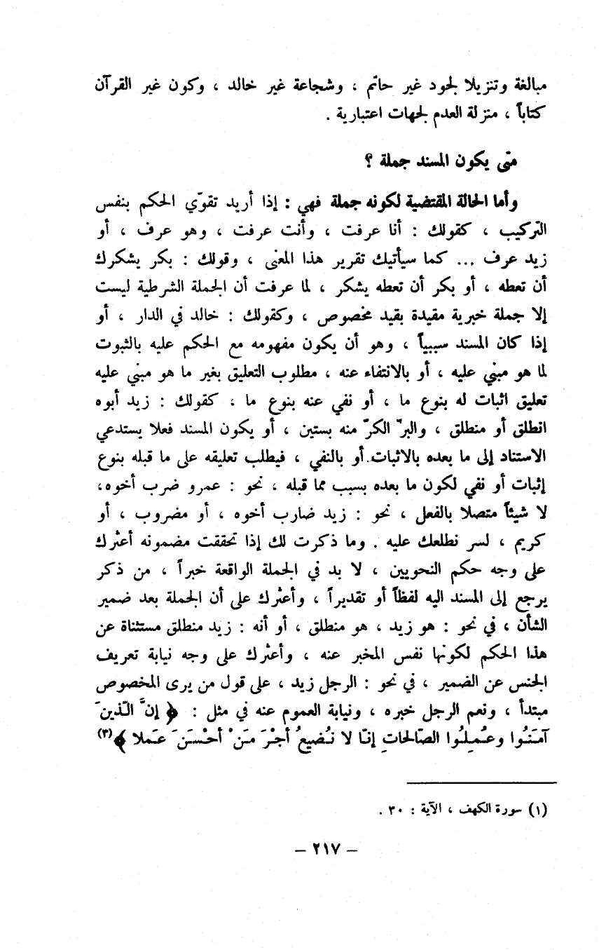 واعلم أن للفعل ولما يتعلق به اعتبارات مجموعها راجع على الترك والإثبات والإظهار والإضمار والتقديم والتأخير فلا بد من التكلم هناك ومن التكلم على الخصوص في تقييده: أعني الفعل بالقيود الشرطية فنقول أما الترك فلا يتوجه على فاعله كما عرف في علم النحو وإنما يتوجه على نفس الفعل أو على غير الفاعل لكنه لا يتضح اتضاحاً ظاهراً إلا في المفعول به كما ستقف عليه. أما الحالة المقتضية لترك الفعل فهي أن تغني قرائن الأحوال عن