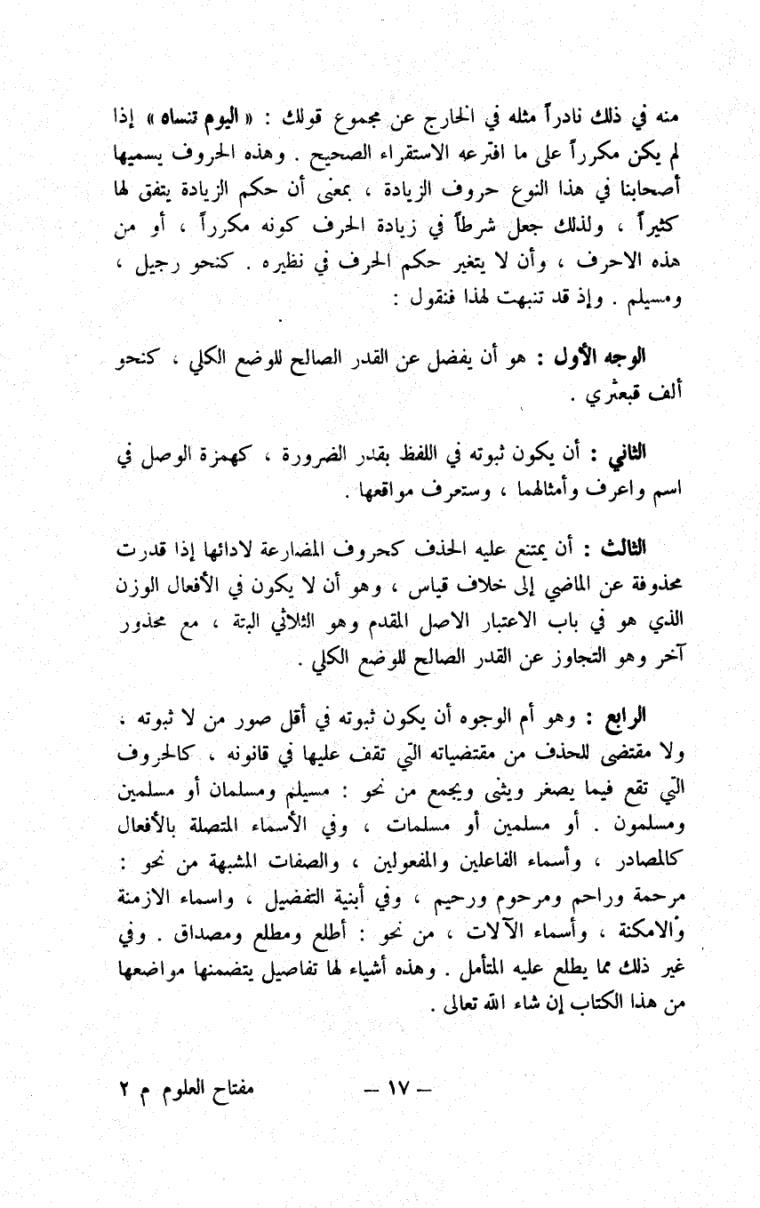 والواو عن أختيها في نحو حبلو وممضو عليه. والهمزة عن حروف اللين والهاء والعين في نحو بأز وشئمة ومؤقد وماء وأباب والهاء عن الألف والهمزة في نحو يا هناه باعتبار وهرقت والجيم عن الياء في نحو قوله: أمسجت وأمسجا. واللام عن الضاد والنون في نحو الطجع وأصيلال والنون عن الواو في صنعاني والدال عن التاء في اجدمعوا والصاد عن السين في نحو أصبغ وصلخ وصبقة وصاظع، والزاي عنها أيضا في نحو يزدل ثوبه والتاء من الواو والصاد والسين والبائي في نحو أنلج ولصت وطست والذعالت. والميم عن الواو والنون والباء في نحو فم وبنام وكثم ولولا أن الكلام في هذا الفصل وفيما قبله متطفل على الكلام في الفصل والأل إذا تأملت لما خففت فيهما كما ترى. وأما القانون الخامس، وهو أن شاهد القلب الدائر بين أن يكون مقلوبا عن غيره وأن لا يكون ماذا والذي حام حوله أصحابنا هو أن يكون أقل تصرفا كنحو قولهم ناء يناء فحسب ونأى ينأى نأيا، ونحو الجاه والحادي والآدر بمعنى الأدور والآرام بمعنى الأرآم والهاعى واللاعى والقسى والشواعى ونحو الجائي إذا لم نحمله على تخفيف الهمزة أو أن يكون الإخلال بالقلب يهدم عندك أصلا يلزمك رعايته كأشياء في غير باب المنصرف إذا لم تأخذها مقلوبة عن شيئاًء وقد كنت أبيت أن يكون أصلها أشيئاًء هذا تمام الأصل. وأما الملحق به فهو إذا لم يكن معك من الأمثلة ما يصلح لتمام ما ذكرنا أن تستخرج لأصالة الحروف وللزيادة أصولا، وكذا لوقوع البدل عن معين فتستعملها. وأما الحذف والقلب فيما نحن بصدده فكغير الواقع ندرة فلا تستخرج لهما أصولا وأن ألجئت على شيء من ذلك يوما من الدهر أمكنك أن تتفصى منه بأدنى نظر إذا أنت أتقنت ما سيقرع سمعك مما نحن له على أن تكون في استعمالك لتلك الأصول مجتهدا في أن لا تطرق لشيء لك منها على المعربة من نحو مرزنجوش