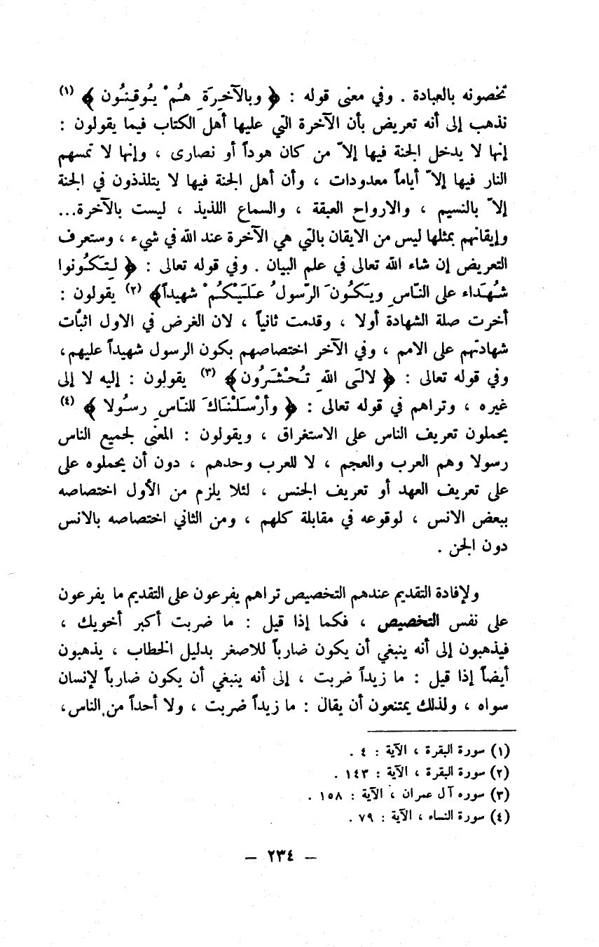 الجزاء والأصل فيها القطع بوقوع الشرط كما إذا قلت إذا طلعت الشمس فإني أفعل كذا قطعا إما تحقيقا كما في المثال المضروب أو باعتبار ما خطابي وهو النكتة في تغليب لفظ الماضي معه على المستقبل فلي الاستعمال لكون الماضي أقرب على القطع من المستقبل في الجملة نظرا على اللفظ. قال تعالى فإذا جاءتهم الحسنة قالوا لنا هذه وإن تصبهم سيئة يطيروا بموسى ومن معه " بلفظ إذا في جانب الحسنة حيث أريدت الحسنة المطلقة لا نوع منها كما في قوله تعالى " وإن تصبهم حسنة يقولوا هذه من عند الله " وفي قوله تعالى " ولئن أصابكم فضل من الله ليقولن " لكون حصول الحسنة المطلقة مقطوعا به كثرة وقوع واتساعا ولذلك عرفت ذهابا على كونها معهودة أو تعريف جنس، والأول أفضى لحق البلاغة وبلفظ إن في جانب السيئة مع تنكير السيئة، إذ لا تقع إلا في الندرة بالنسبة على الحسنة المطلقة ولا يقع إلا شيء منها ولذلك قيل قد عددت أيام البلاء فهل عددت أيام الرخاء، ومنه " وإذا أذقنا الناس رحمة فرحوا بها وإن تصبهم سيئة بما قدمت أيديهم إذا هم يقنطون " بلفظ إذا في جانب الرحمة وكأن تنكيرها وقصد النوع للنظر على لفظ الإذاقة فهو المطابق للبلاغة، وأما قوله " وإن كنتم في ريب مما نزلنا على عبدنا " وإن كنتم في ريب من البعث بلفظ إن مع المرتابين فإما لقصد التوبيخ على الريبة لاشتمال المقام على ما يقلعها عن أصلها وتصوير أن المقام لا يصلح إلا لمجرد الفرض للارتياب كما قد تفرض المجالات متى تعلقت بفرضها أغراض كقوله تعالى " ولو سمعوا ما استجابوا لكم " والضمير في سمعوا للأصنام ويتأبى أن يقال وإذا رتبتم، ومثله