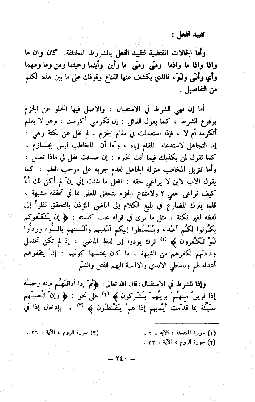 إحسانه مستمر الامتناع فيما مضى وقتا فوقتا على نحو قصد الاستمرار حالاً ف حالاً بيستهزئ في قوله عز اسمه " الله يستهزئ بهم بعد قوله قالوا أنا معكم إنما نحن مستهزءون " وبيكسبون في قوله فويل لهم مما كتبت أيديهم وويل لهم مما يكسبون، وقوله لو يطيعكم في كثير من الأمر لعنتم وارد على هذا أي يمنع عليه السلام عنتكم باستمرار امتناعه عن طاعتكم ولك أن ترد الغرض من لفظ نرى ويود وتحسن على استحضار صورة المجرمين ناكسي الرءوس قائلين لما يقولون وصورة الظالمين موقوفين عند ربهم متقاولين بتلك المقالات واستحضار صورة ودادة الكافرين لو أسلموا واستحضار صورة منع الإحسان كما في قوله: والله الذي أرسل الرياح فتثير سحابا فسقناه على بلد ميت