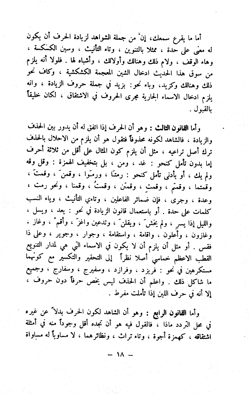 وباذنجانة وأسيفيذباج وإستبرق طريقا وإلا وقعت في تخبط، ووجه الاستخراج هو أن تسلك الطريق على ما عرفت سلوكا في غير موضع صادق التأمل لحروف الزيادة وقد عرفتها أين تمتنع زيادتها أو تقل فتتخذ ذلك الموضع أصلا لأصالة الحروف وأين تجب لها أو تكثر فتتخذه أصلا للزيادة وهكذا الحروف البدل وقد أحاطت بها معرفتك أيما موضع يختص بحرف معين أو يكثر ذلك فيه فتتخذه أصلا لكون ما سوى ذلك الحرف هناك بدلا منه، وأنا أذكر لك